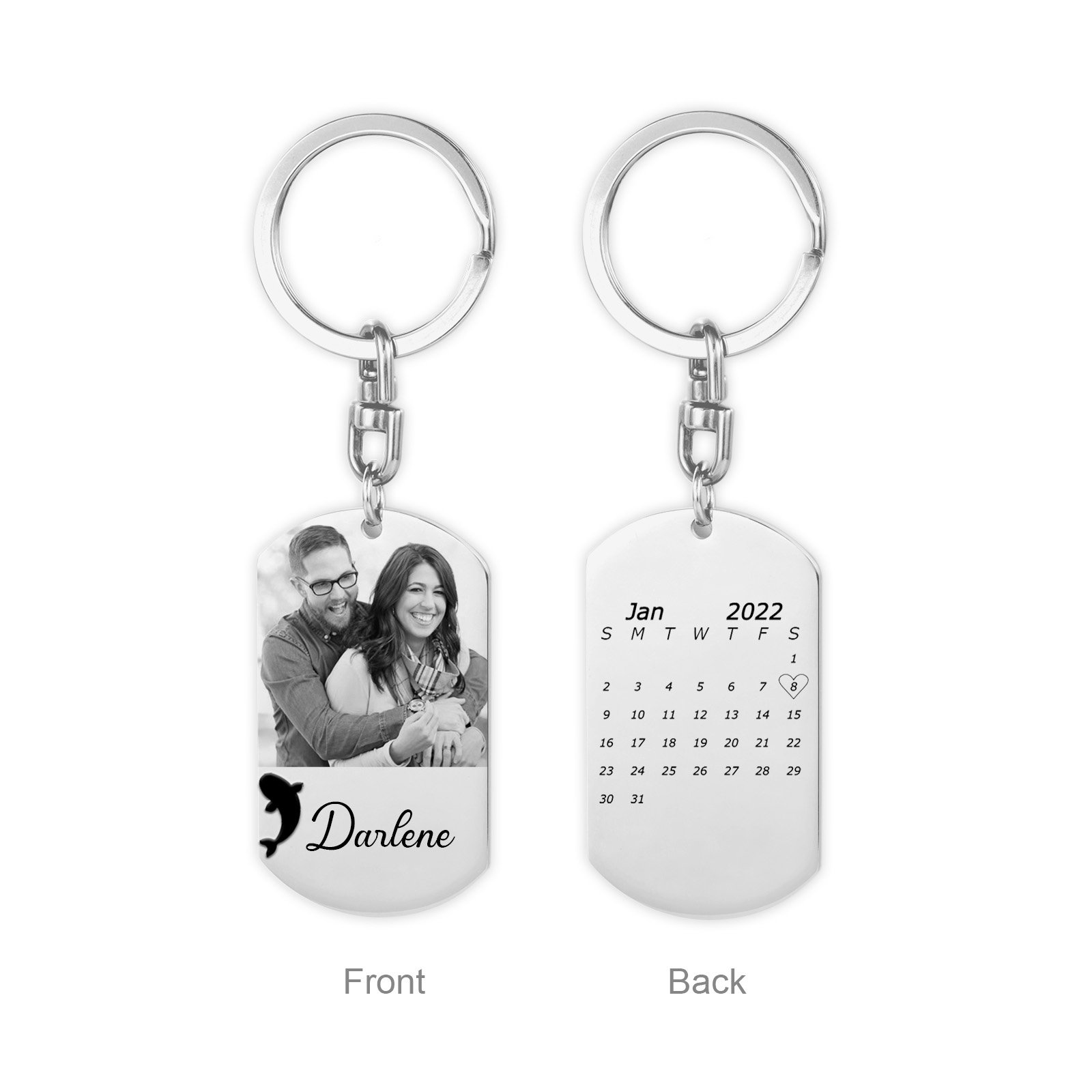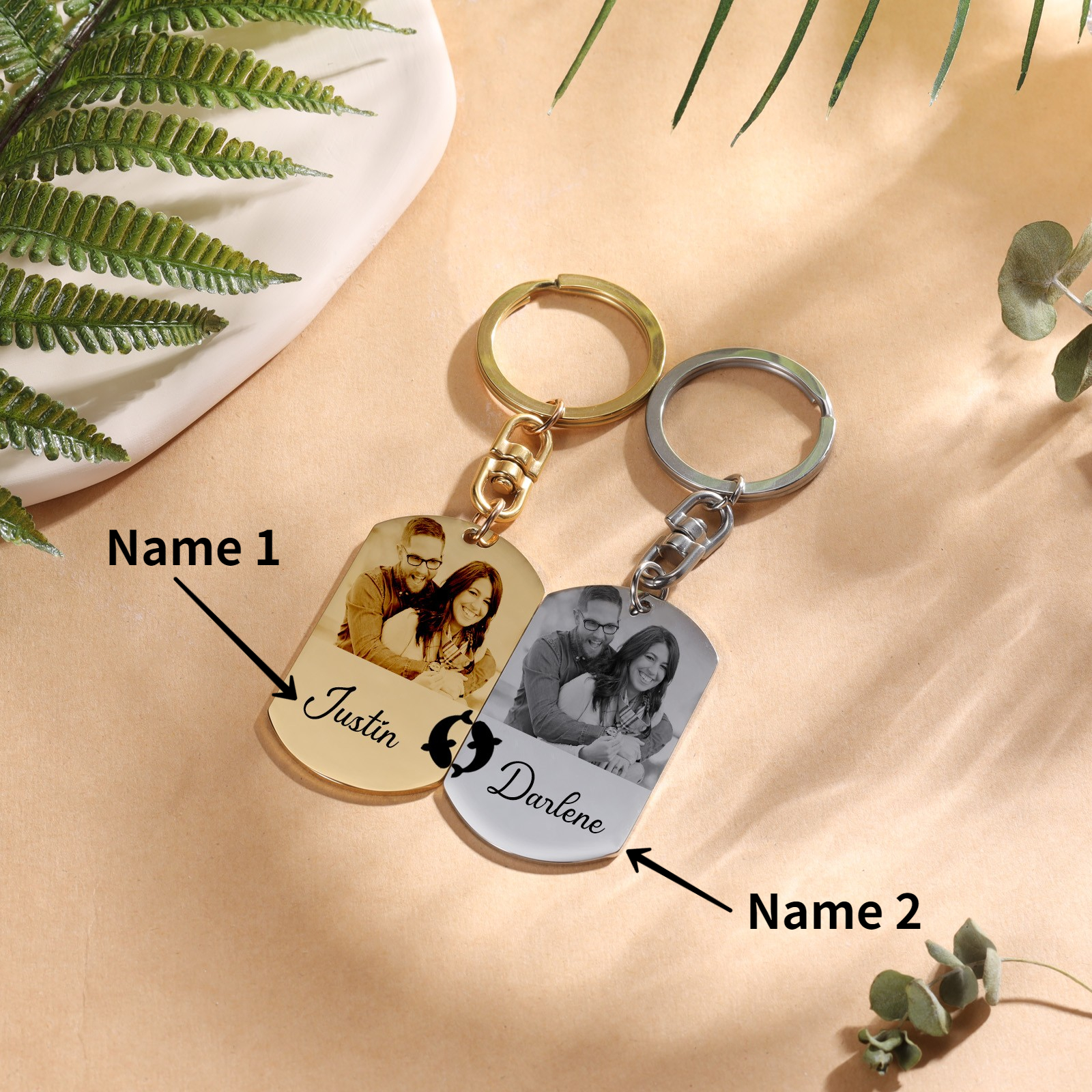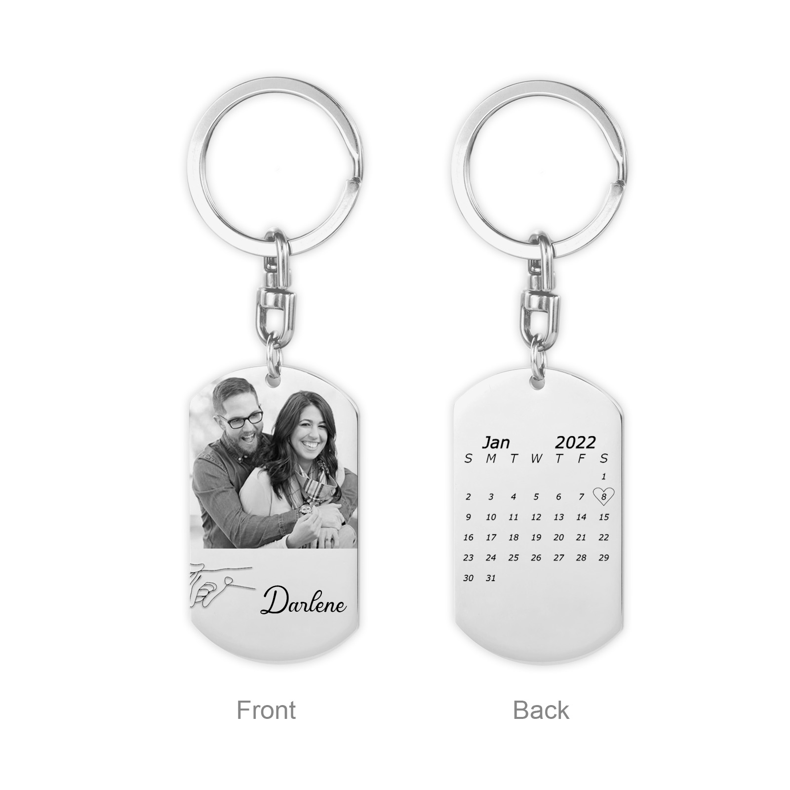 Personalisierbar 2 Namen & Datum & Foto Geste der Liebe Paar Metall-Schlüsselanhänger