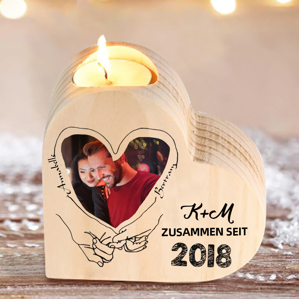 Personalisierte Foto & Text & Datum Herz Kerzenhalter- für Paare