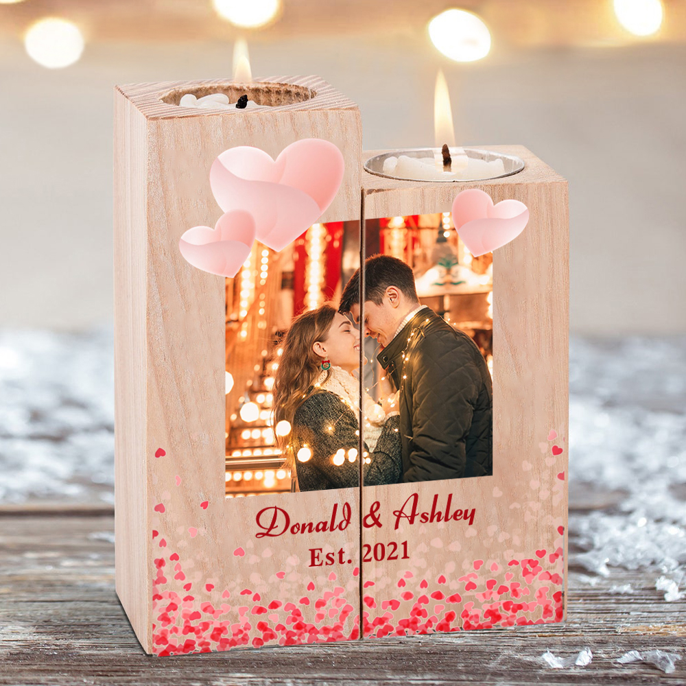 Personalisierte Foto & 2 Texte & Datum Herz Kerzenhalter- für Paare