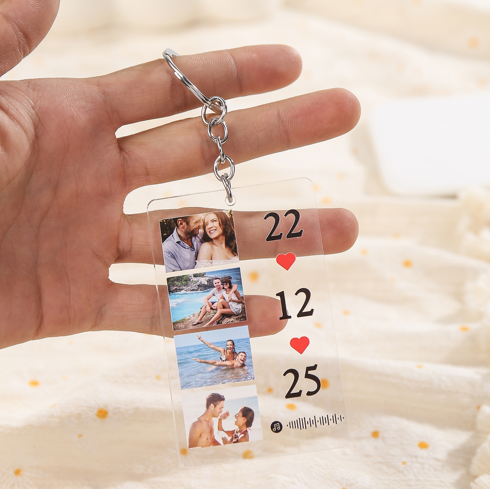 Personalisierbare 4 Fotos & Spotify Code & Datum Acryl Schlüsselanhänger für Paare