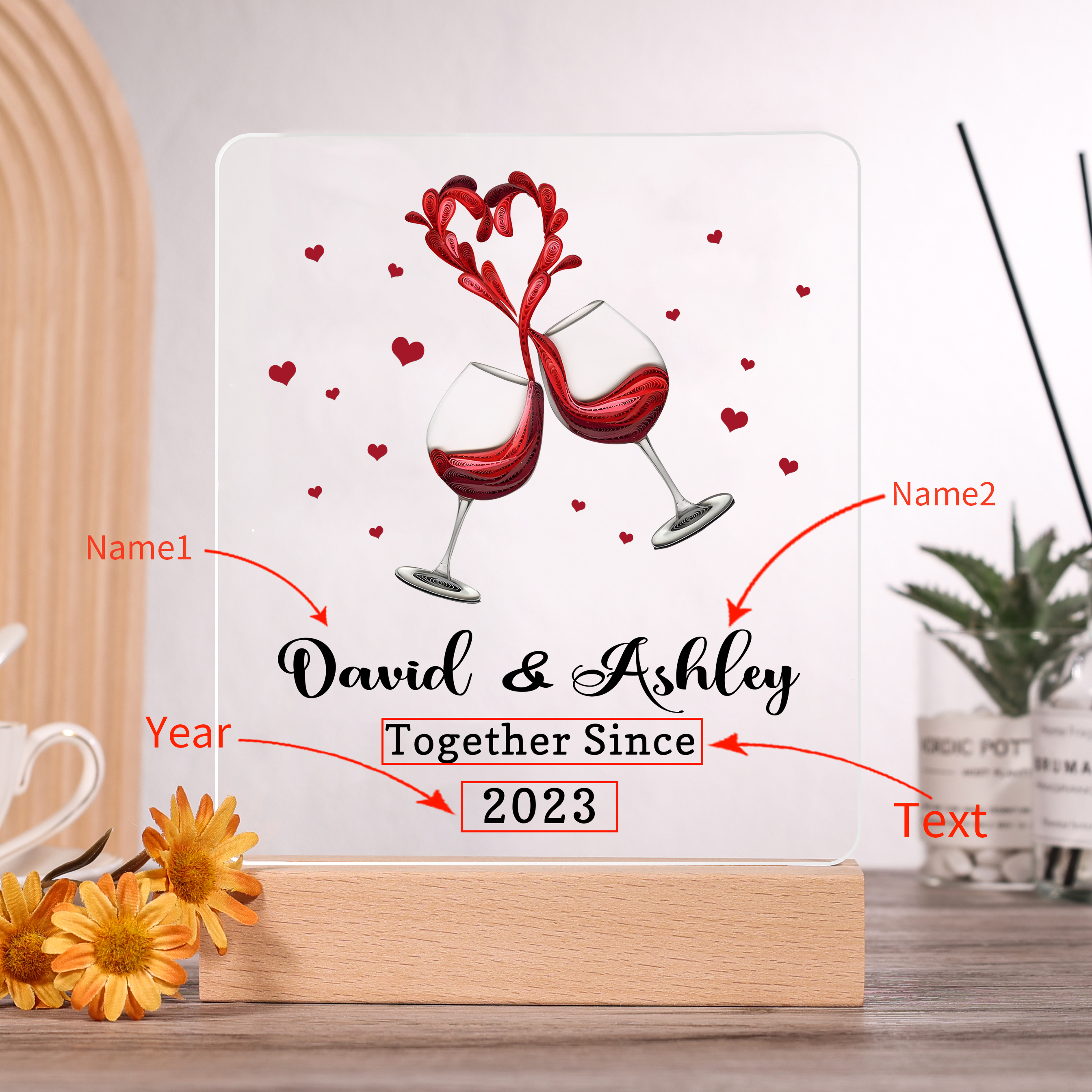 Personalisierte 2 Namen & Text & Jahr Paar Nachtlicht für Paare