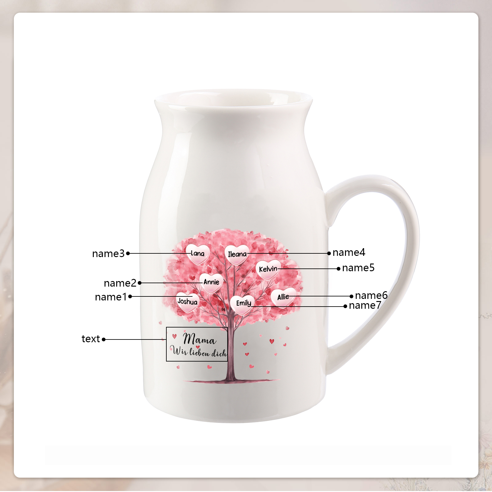 Personalisierte 7 Namen & Text Rosa Familienbaum Familie Vase