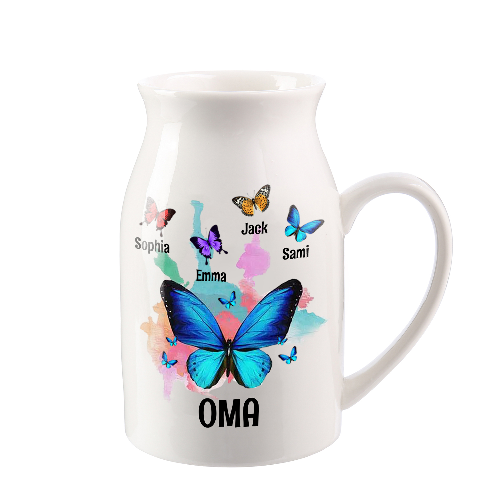 Personalisierte 3 Namen & Text Blumen & Schmetterling Familie Vase Geschenk für Oma Großmutter