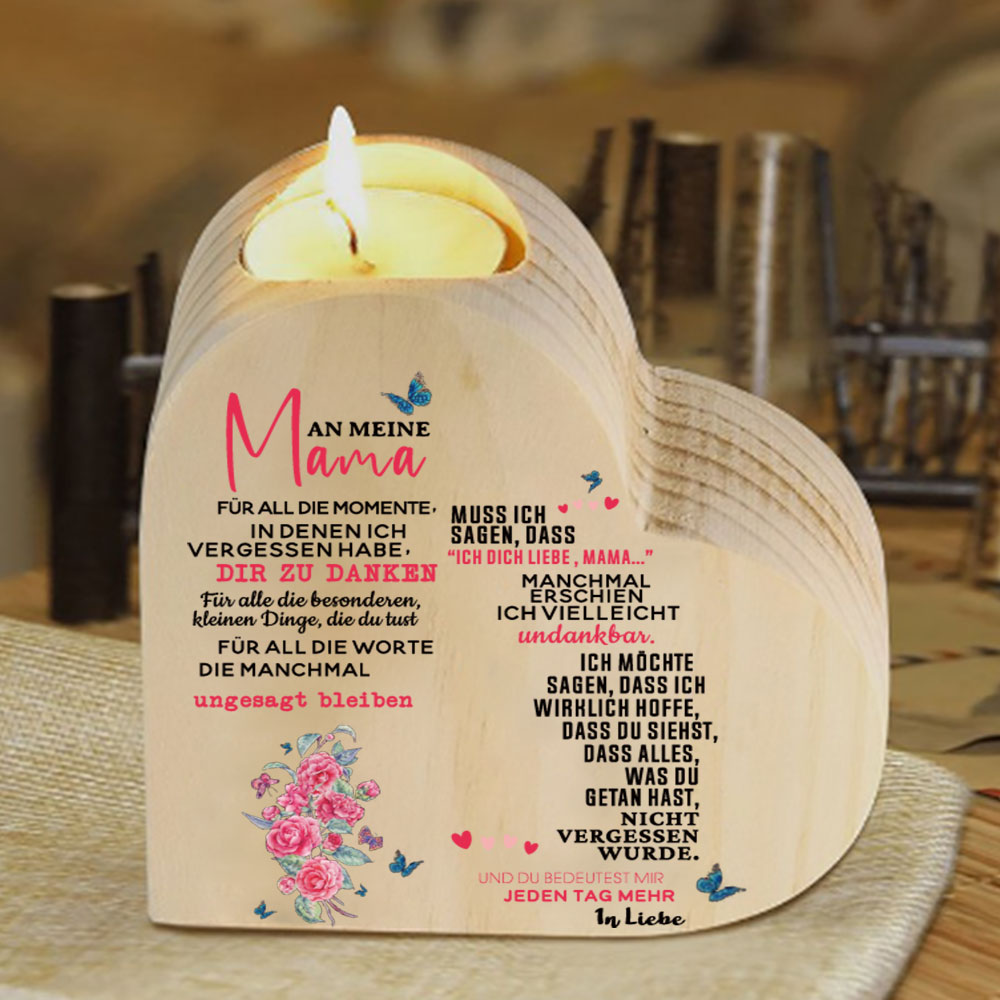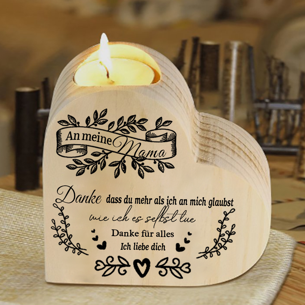 Herzform Kerzenhalter-An Meine Mama-Danke dass du dich seit dem Tag meiner Geburt für mich da bist-Kerzenständer