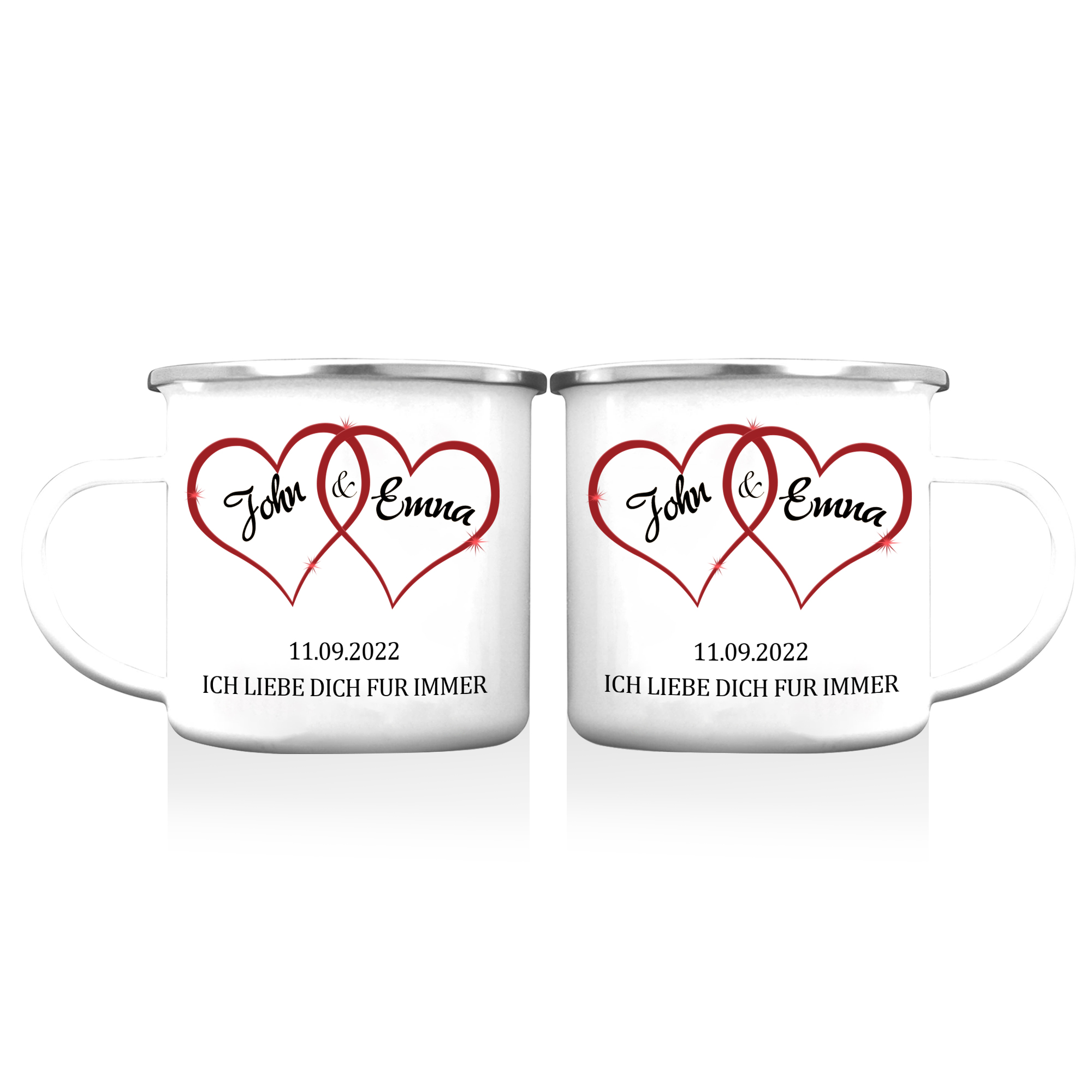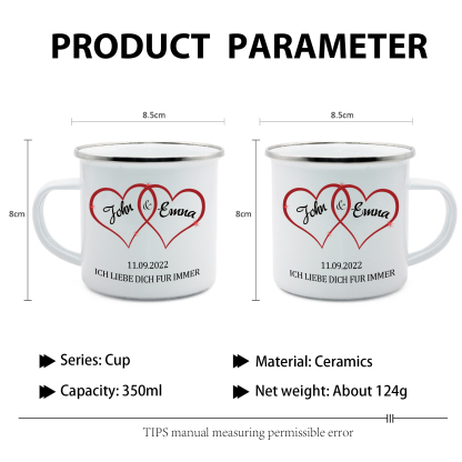 Emaille Tasse-Personalisierte 2 Namen & Datum & Text Emaille Becherfür Paare