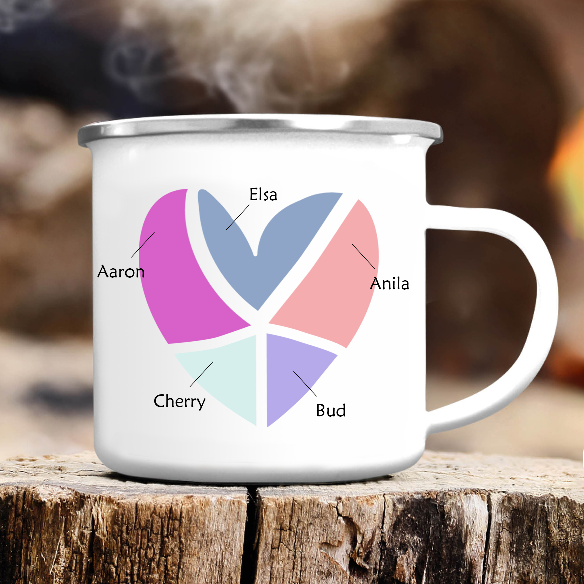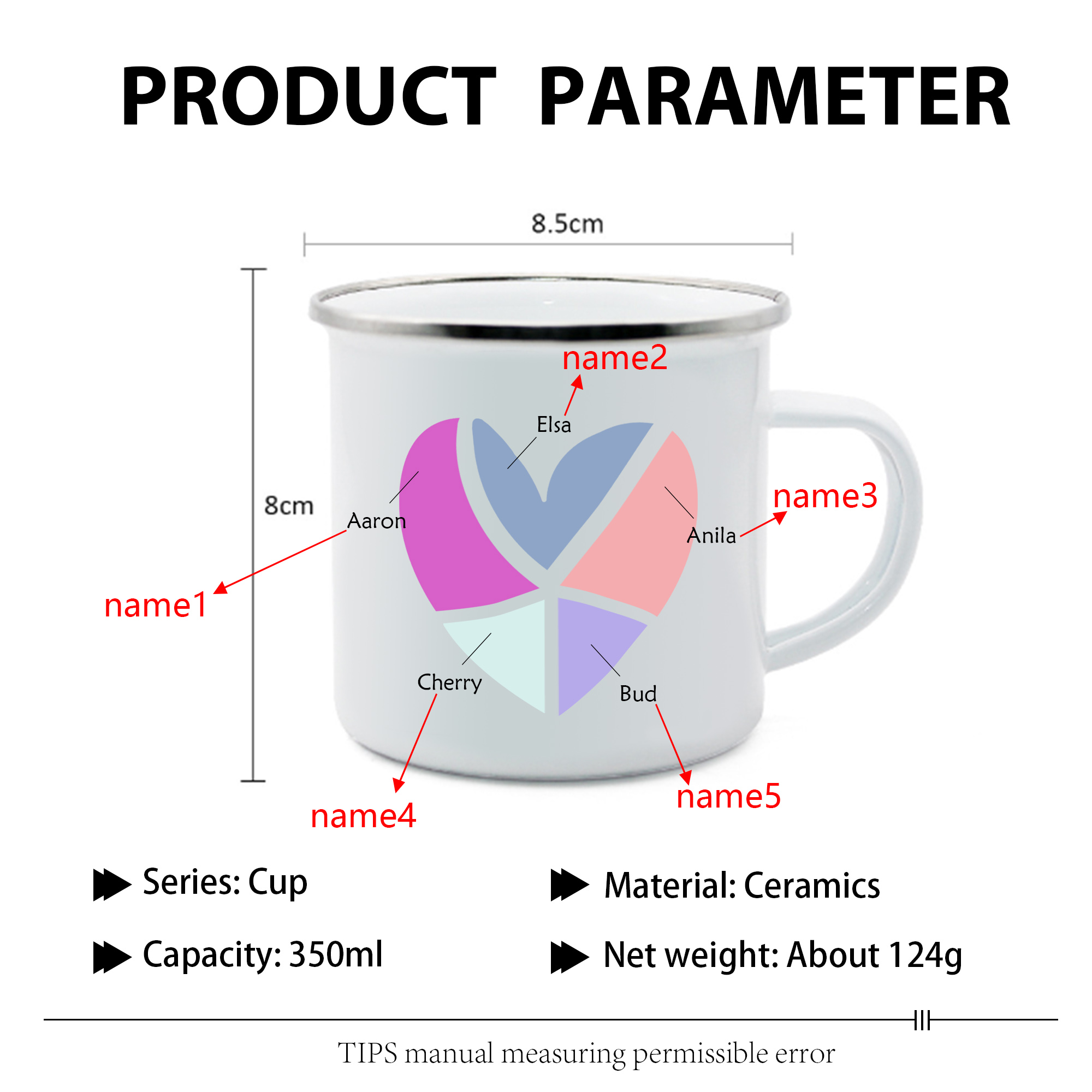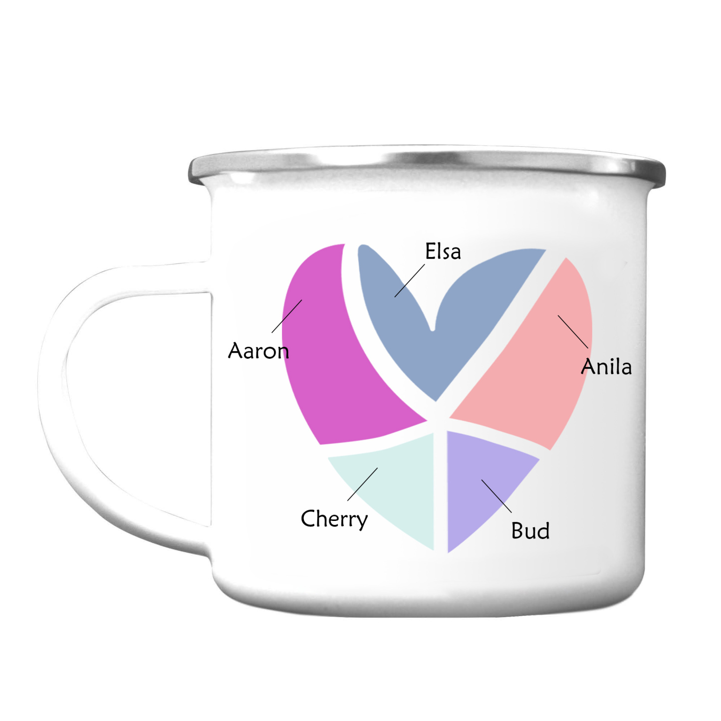 Emaille Tasse-Personalisierte 5 Namen Herz Emaille Becher