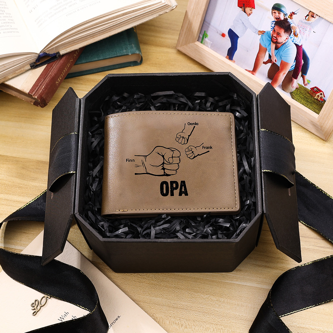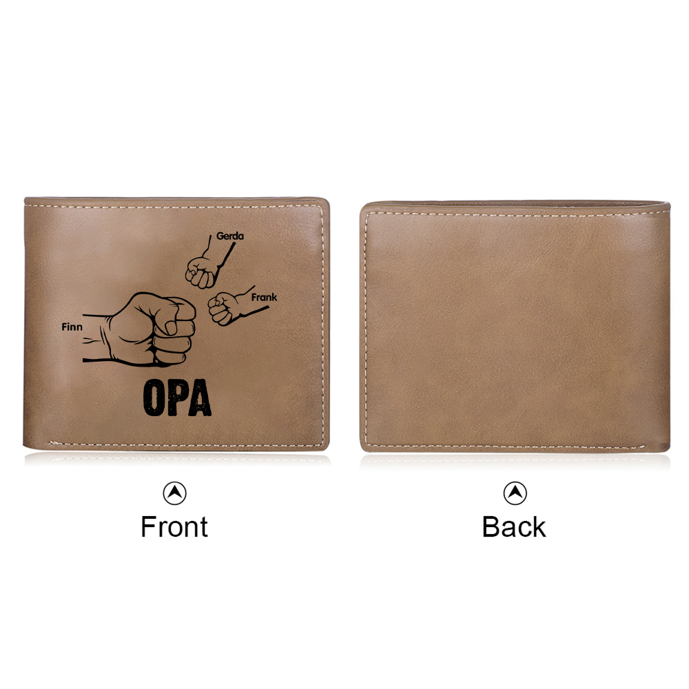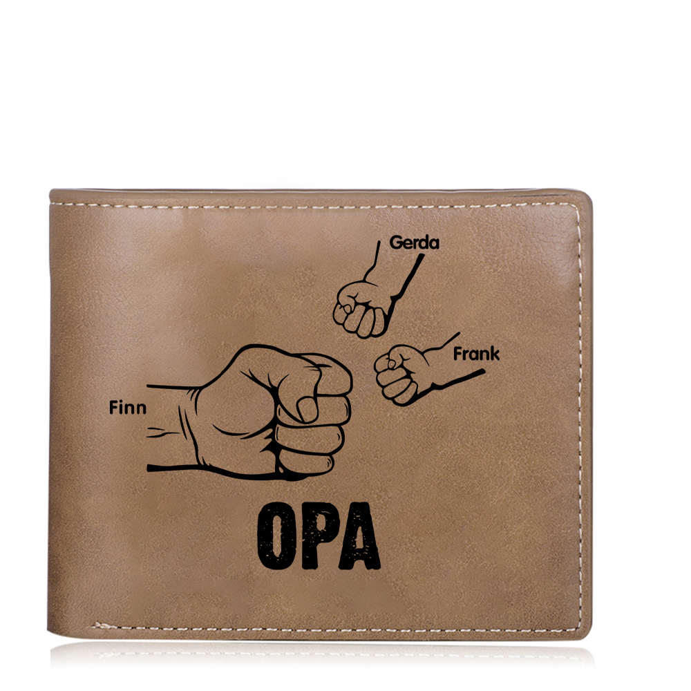 Personalisierte 3 Namen Opa Faust PU Leder Kurze Geldbörse für Großvater