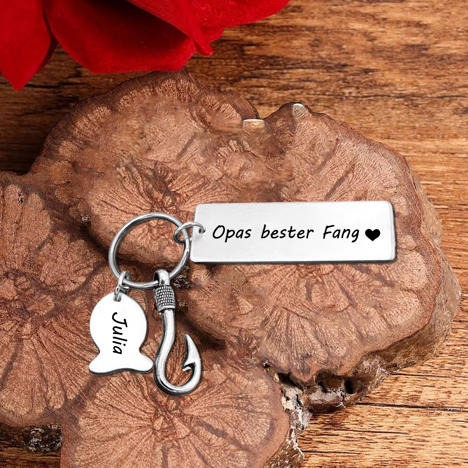 Personalisierter 1 Name-Opas bester Fang-Schlüsselanhänger-An meinen Großvater-Geschenk mit Nachrichtenkarte