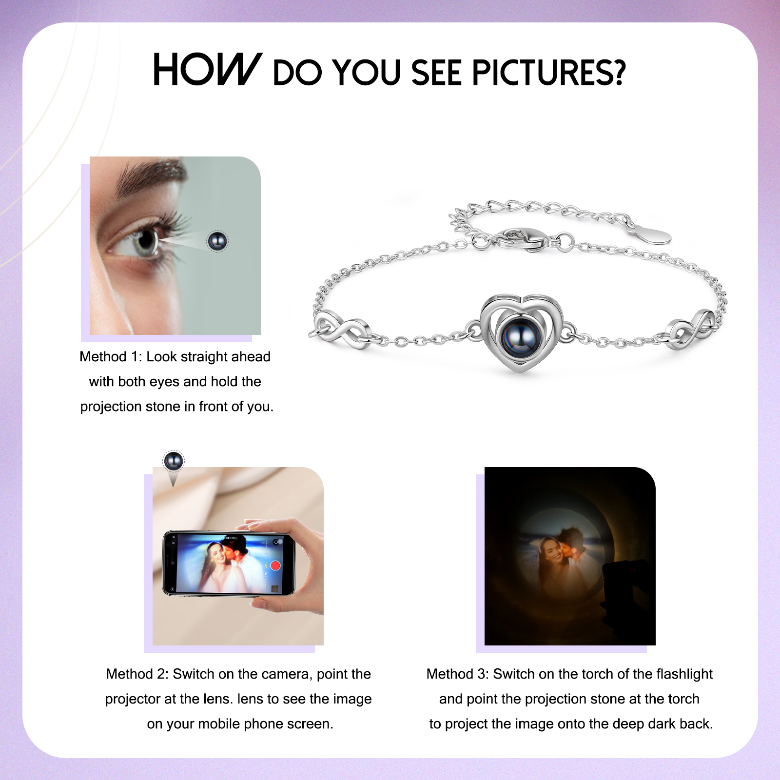 Personalisiertes Foto Herz Projektion Infinity Armband