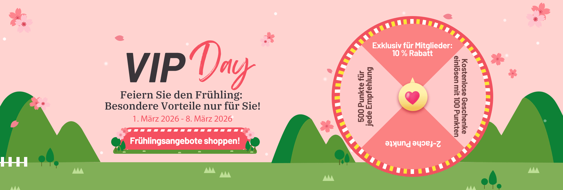 Sie können Punkte verwenden, um kostenlose Versandgutscheine und Rabattgutscheine einzulösen. Diese Gutscheine verfallen 30 Tage nach der Einlösung, also nutzen Sie sie bitte so schnell wie möglich.