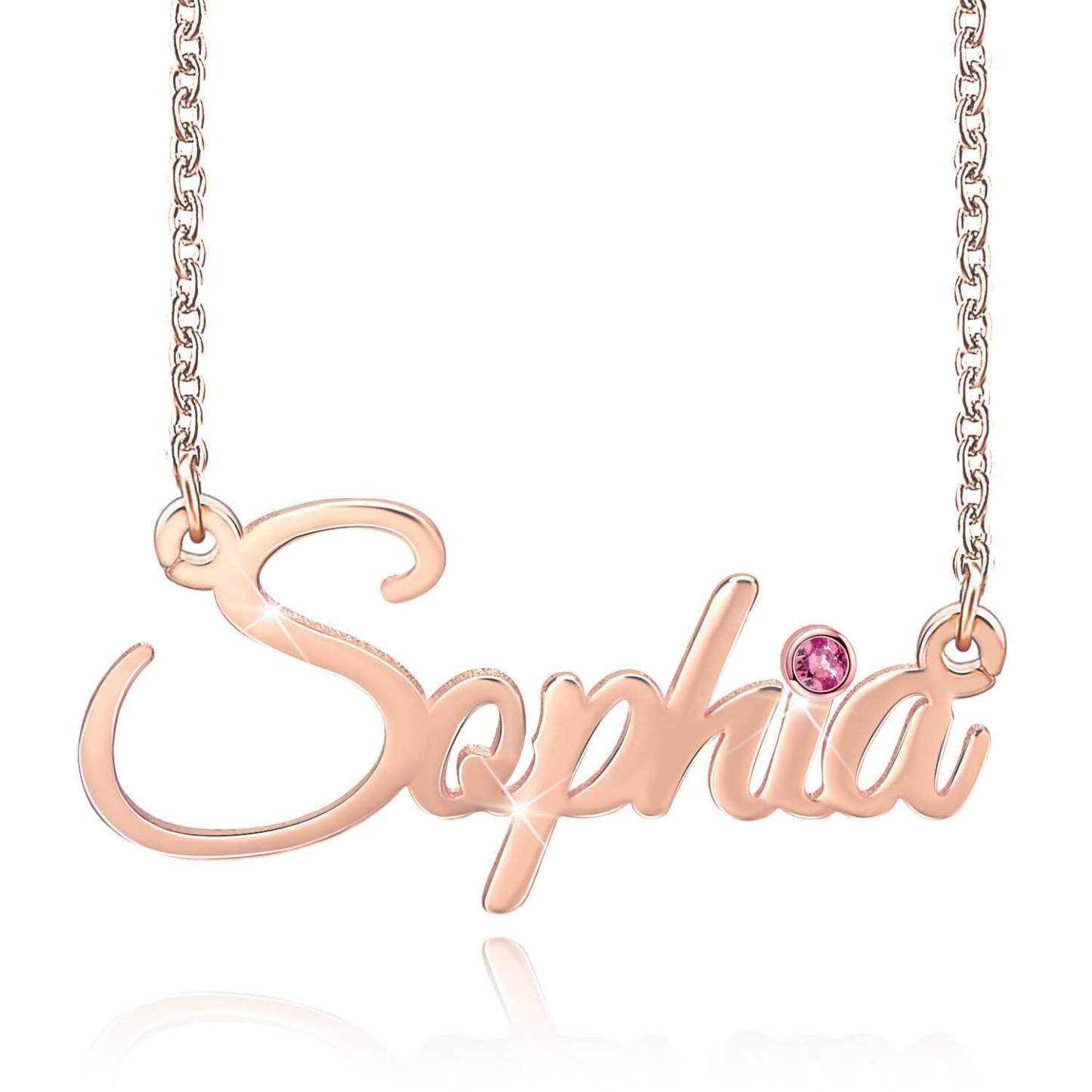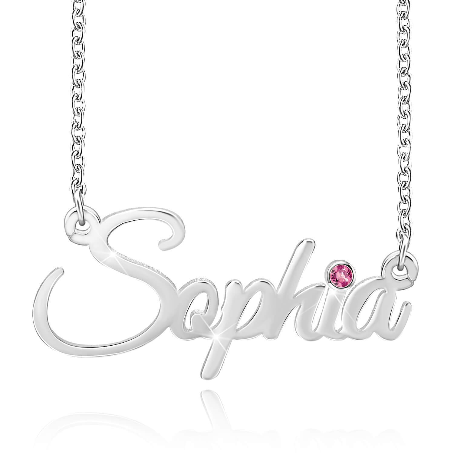 1 Namensgravur Halskette mit Geburtsstein