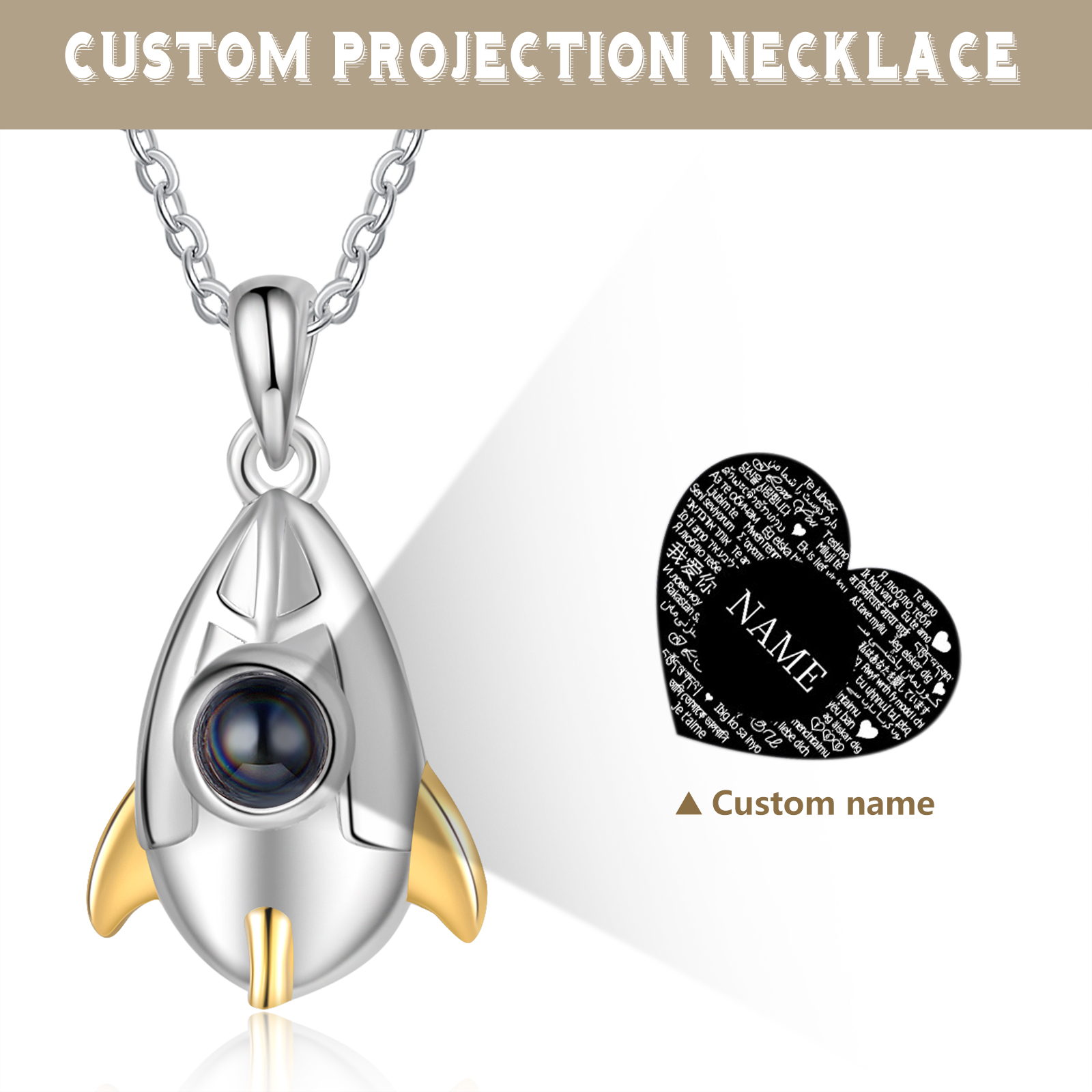 100 Sprachen Ich Liebe Dich Projektion Paar Rakete und Astronaut Halskette, Personalisierte Name Graviert
