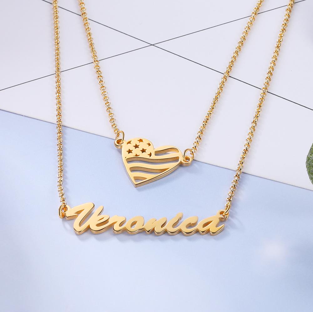 2 Halsketten mit 1 Namensgravur mit Herzchen
