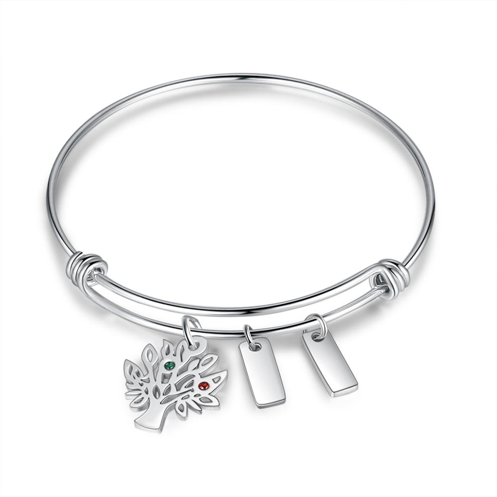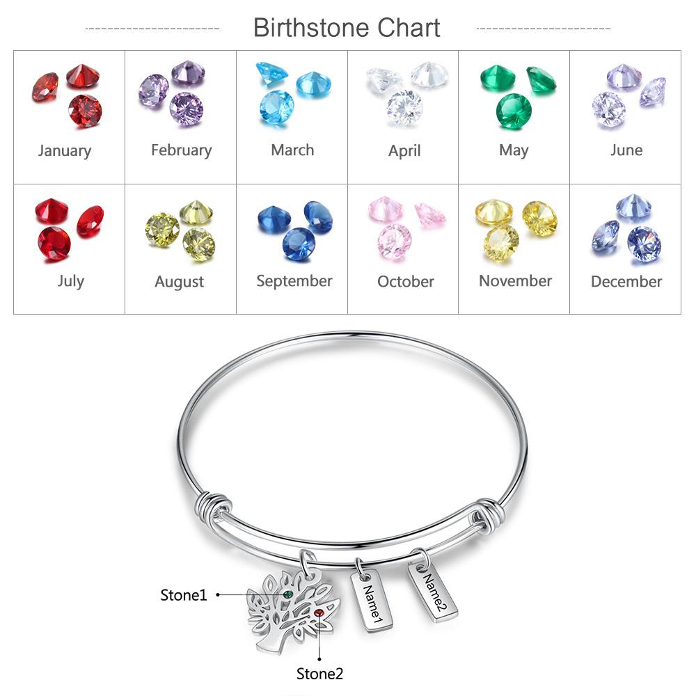 2 Namensgravuren Armband mit Familienstammbaum 2 Geburtssteine
