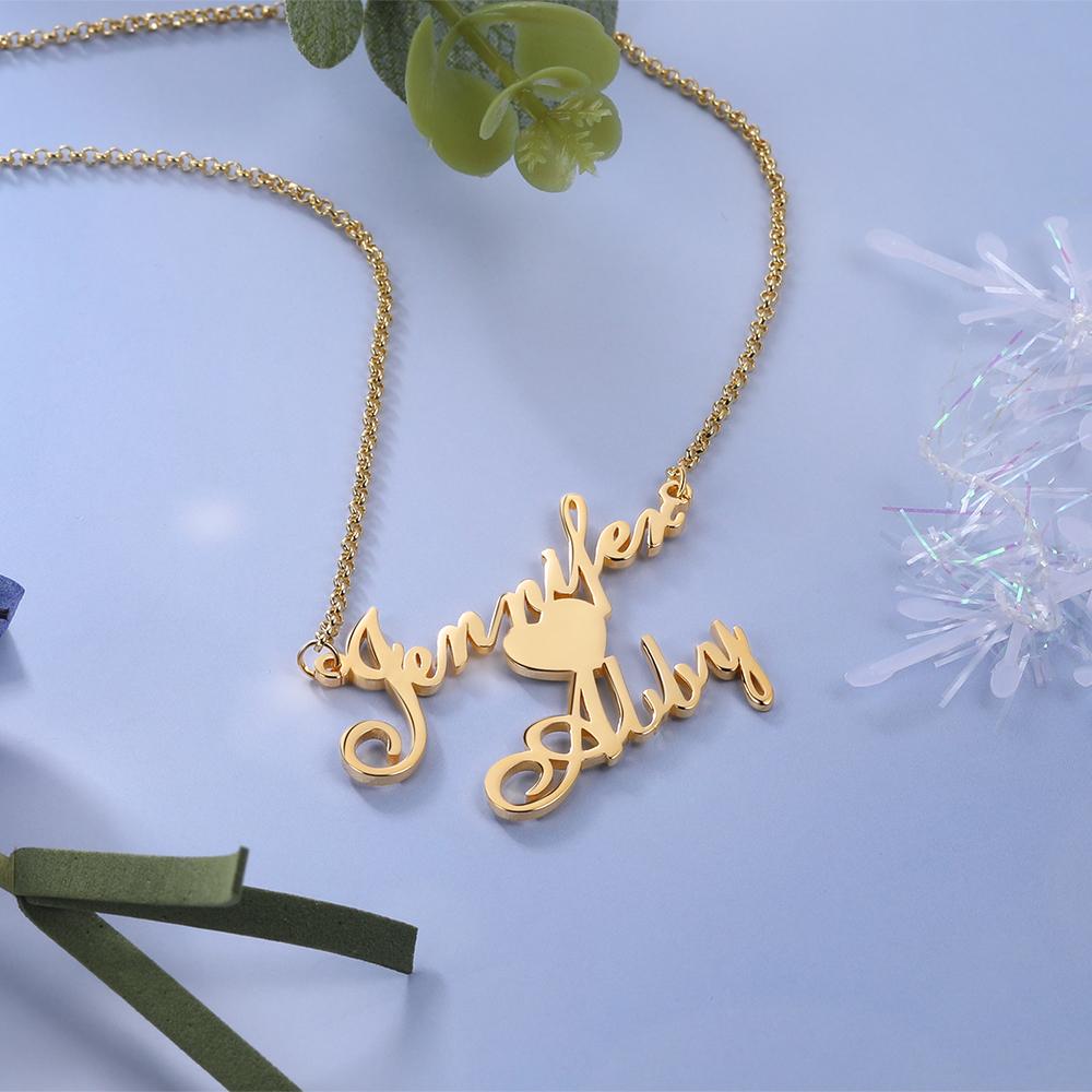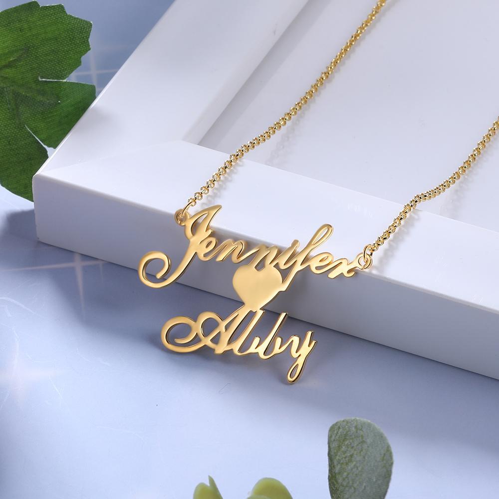2 Namensgravuren Halskette mit Herzchen Geschenk