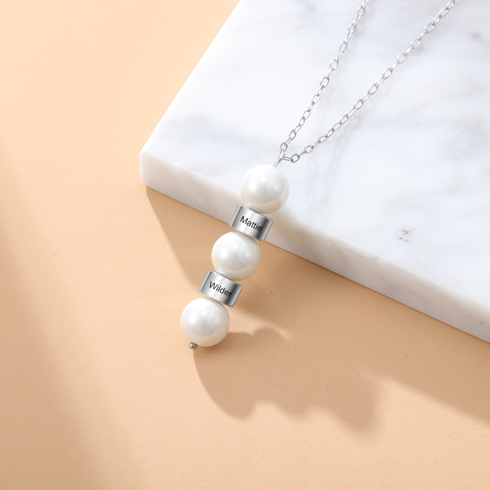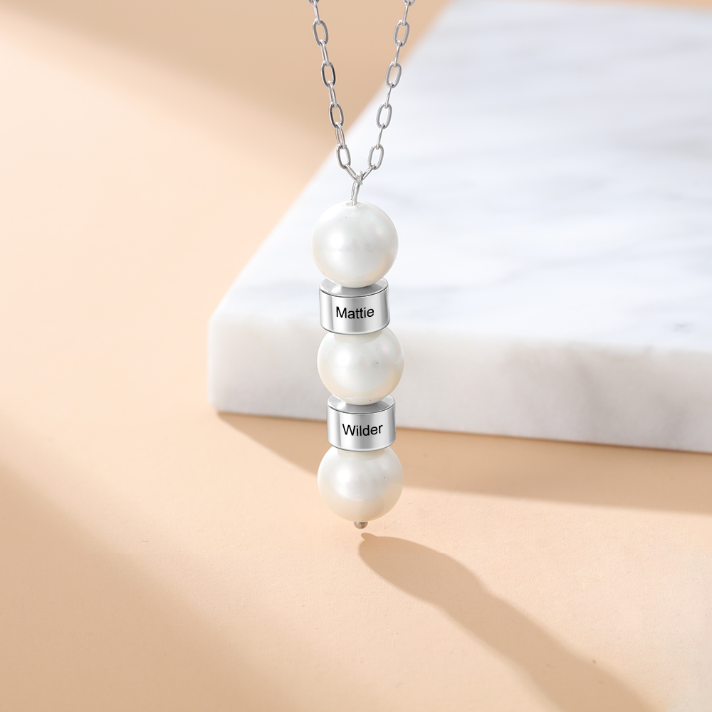 2 Namensgravuren Halskette mit Perle