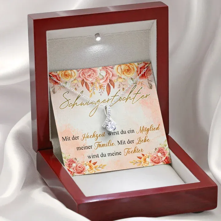 925 Sterling Silber Halskette für Schwiegertochter-Mit der Liebe wirst du meine Tochter-Geschenk mit Nachrichtenkarte