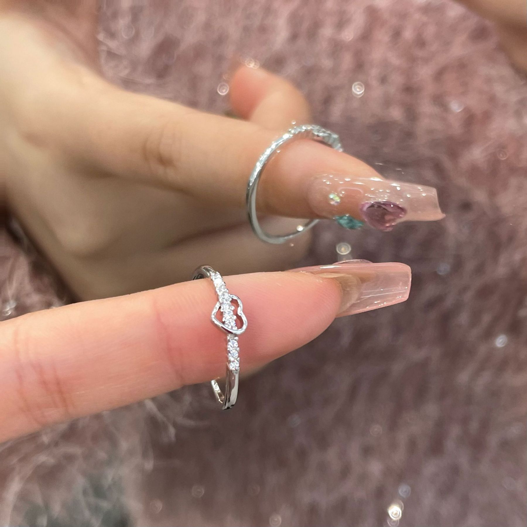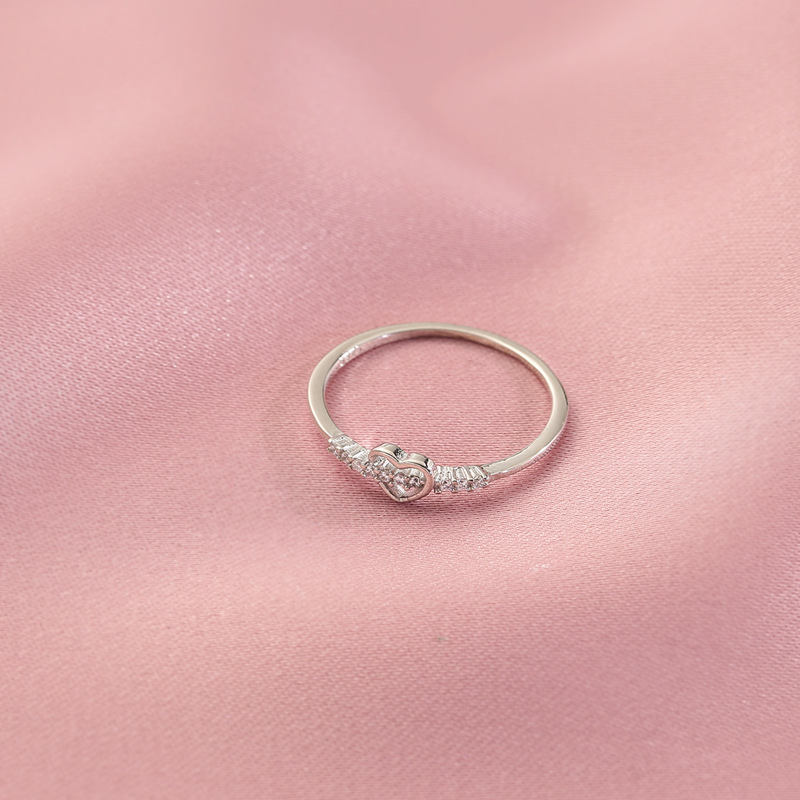 925 Sterling Silber Herz Offener Ring mit Zirkonia