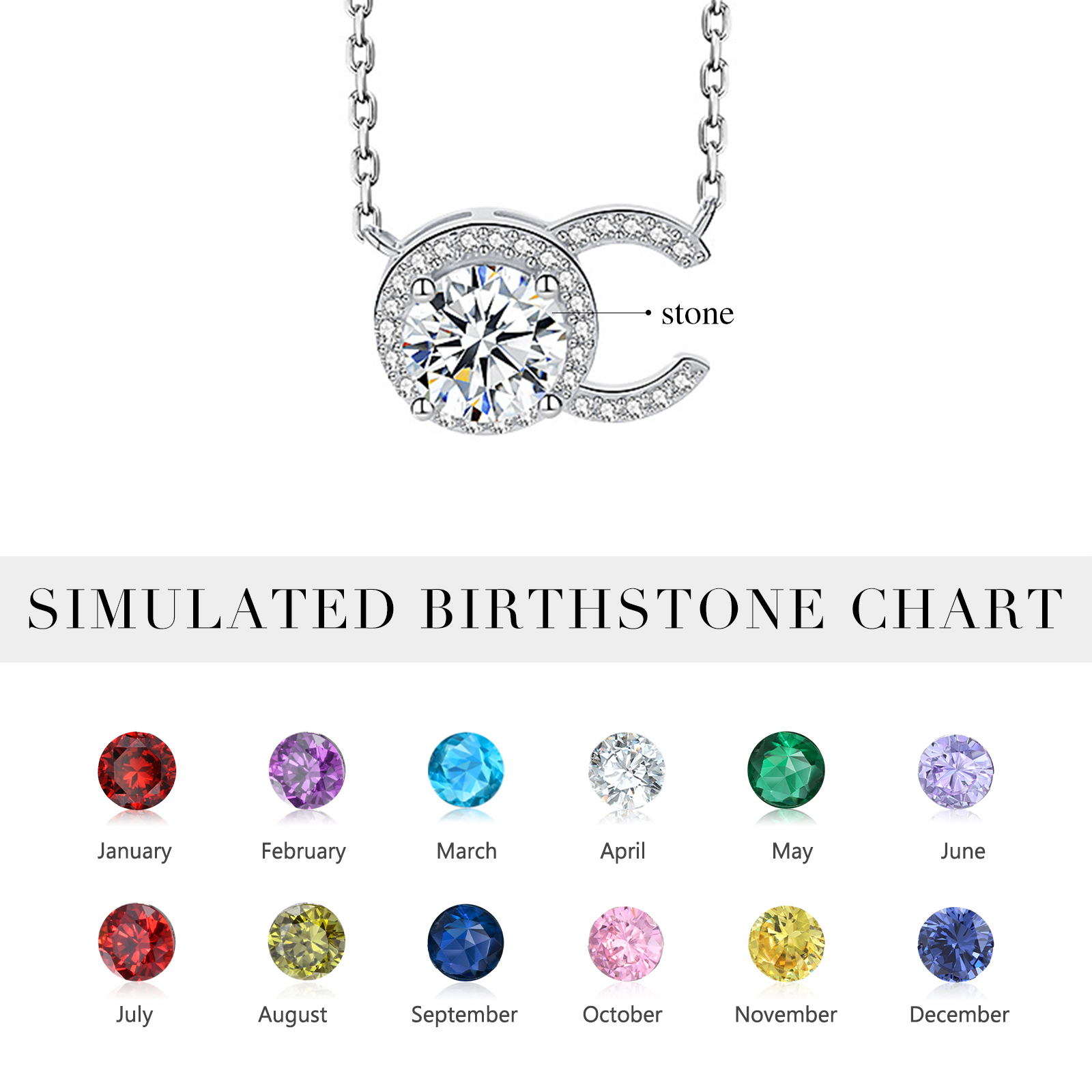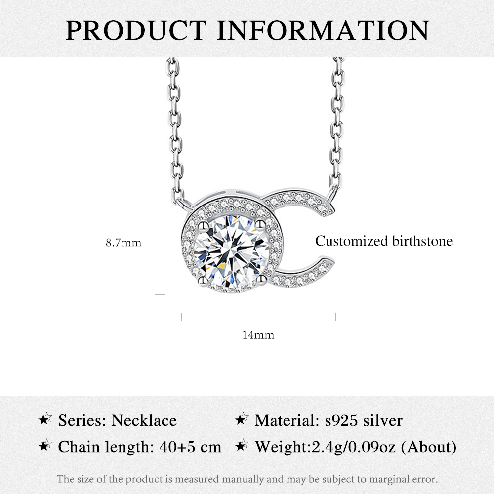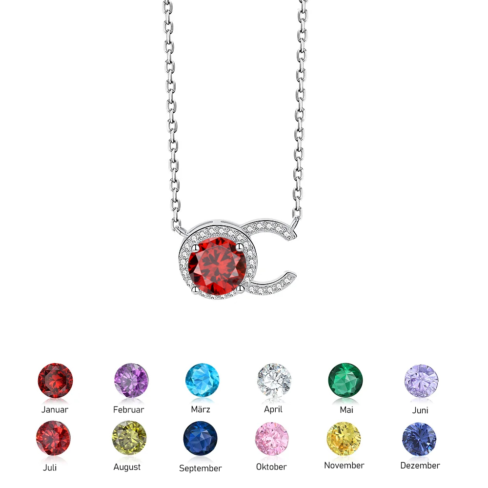 925 Sterling Silber Personalisierte Geburtsstein CC Halskette mit Zirkonia