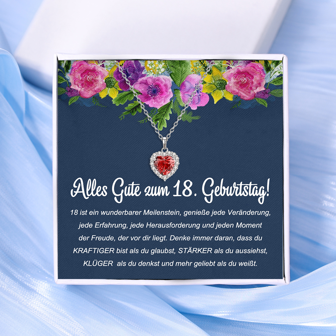 925 Sterling Silber Personalisierte Geburtsstein Herz Halskette-Alles Gute zum 18. Geburtstag!-Geschenk mit Nachrichtenkarte