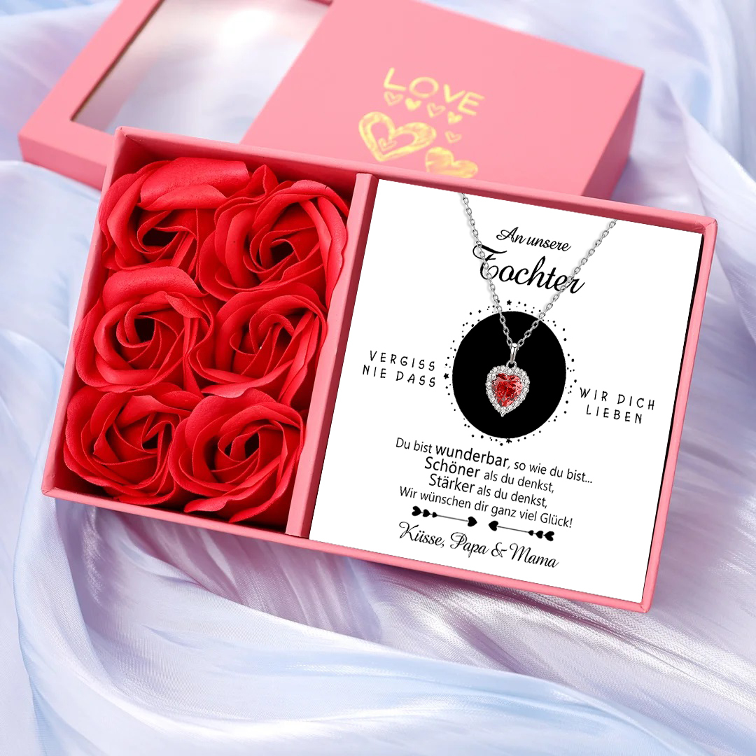 925 Sterling Silber Personalisierte Geburtsstein Herz Halskette-An unsere Tochter von Papa & Mama-Geschenk mit Nachrichtenkarte