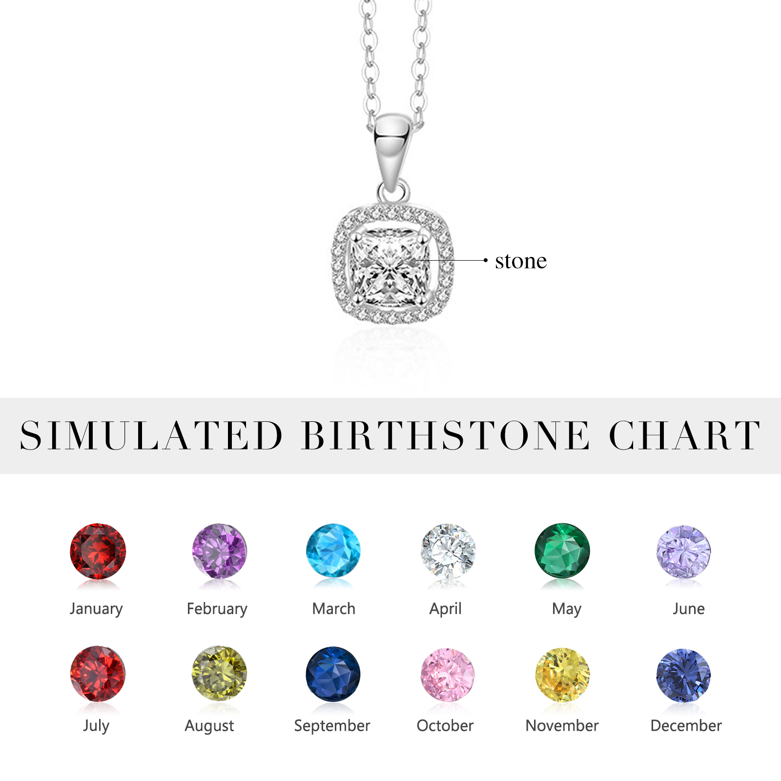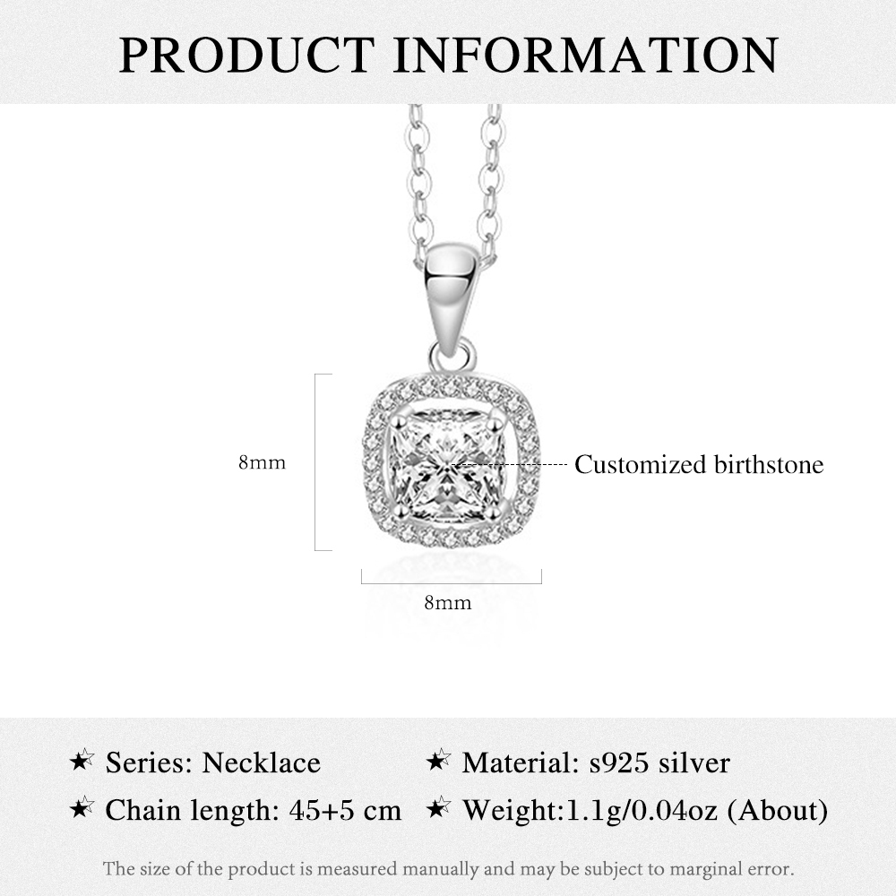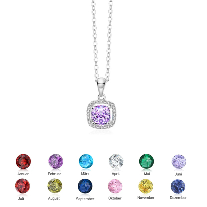 925 Sterling Silber Personalisierte Geburtsstein Quadratischer Schnitt Halskette mit Zirkonia