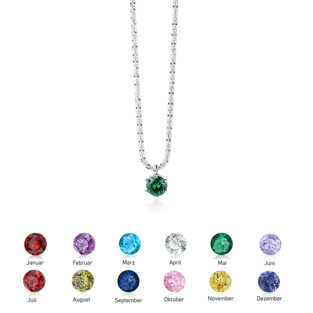 925 Sterling Silber Personalisierte Geburtsstein Rund Halskette mit Zirkonia