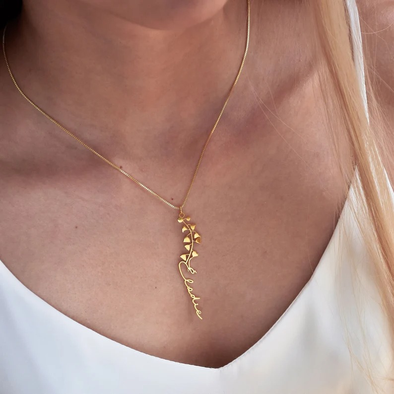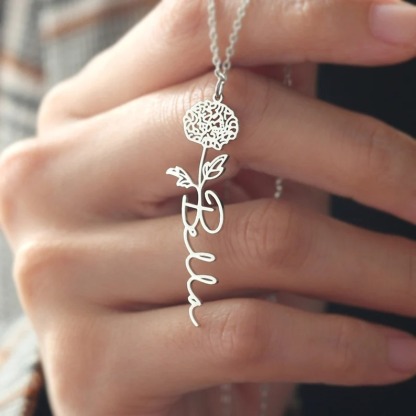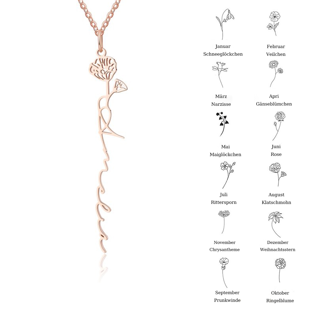 925 Sterling Silber Personalisierte Name Geburtsblume Halskette - Geburtsblume Serie