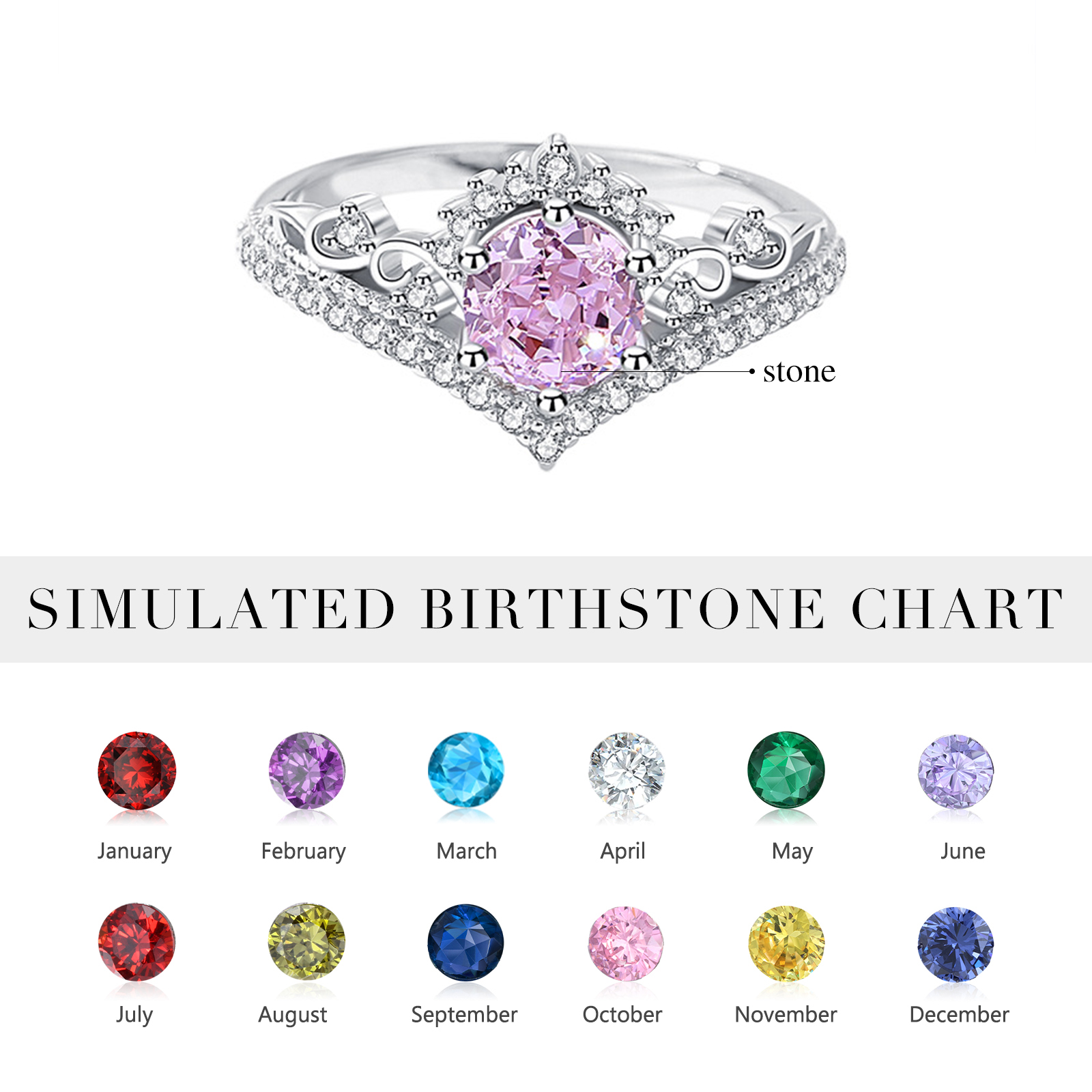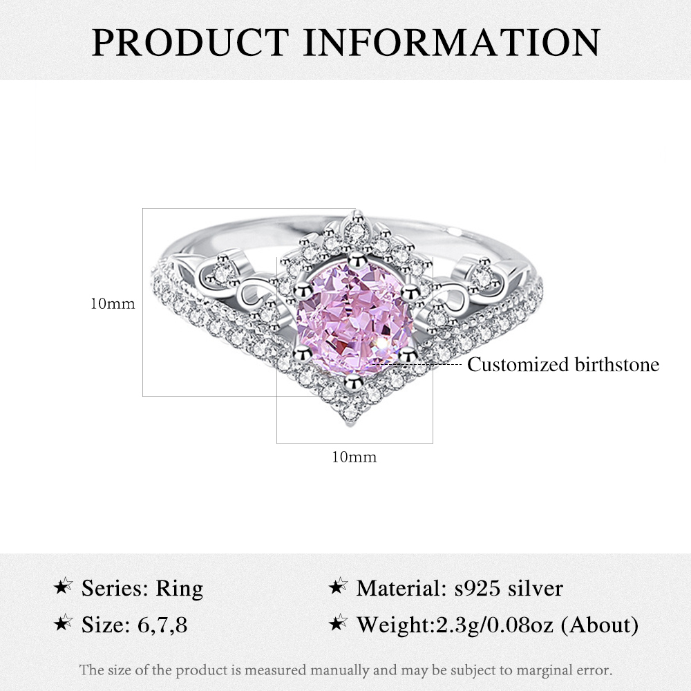 925 Sterling Silber Personalisierter Geburtsstein Diadem Ring