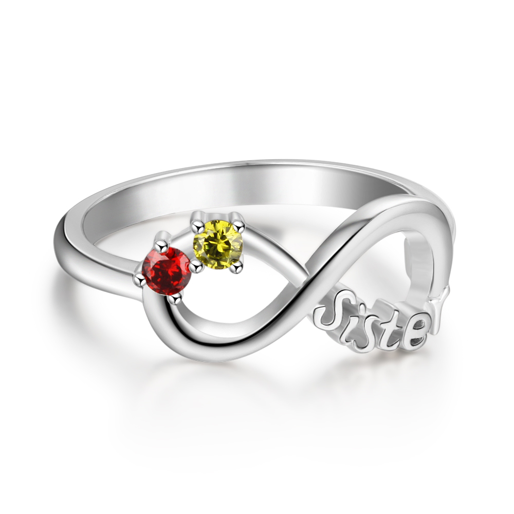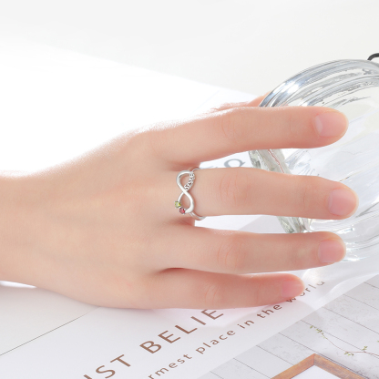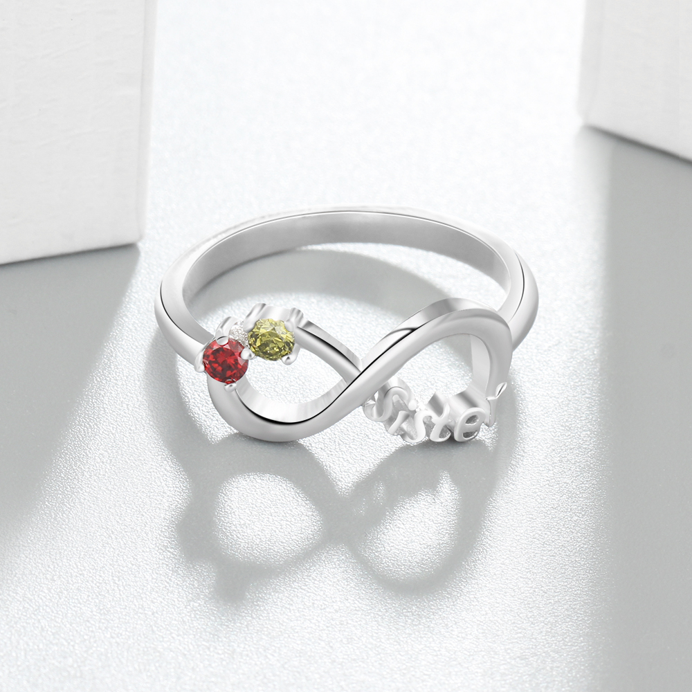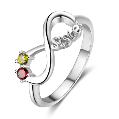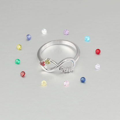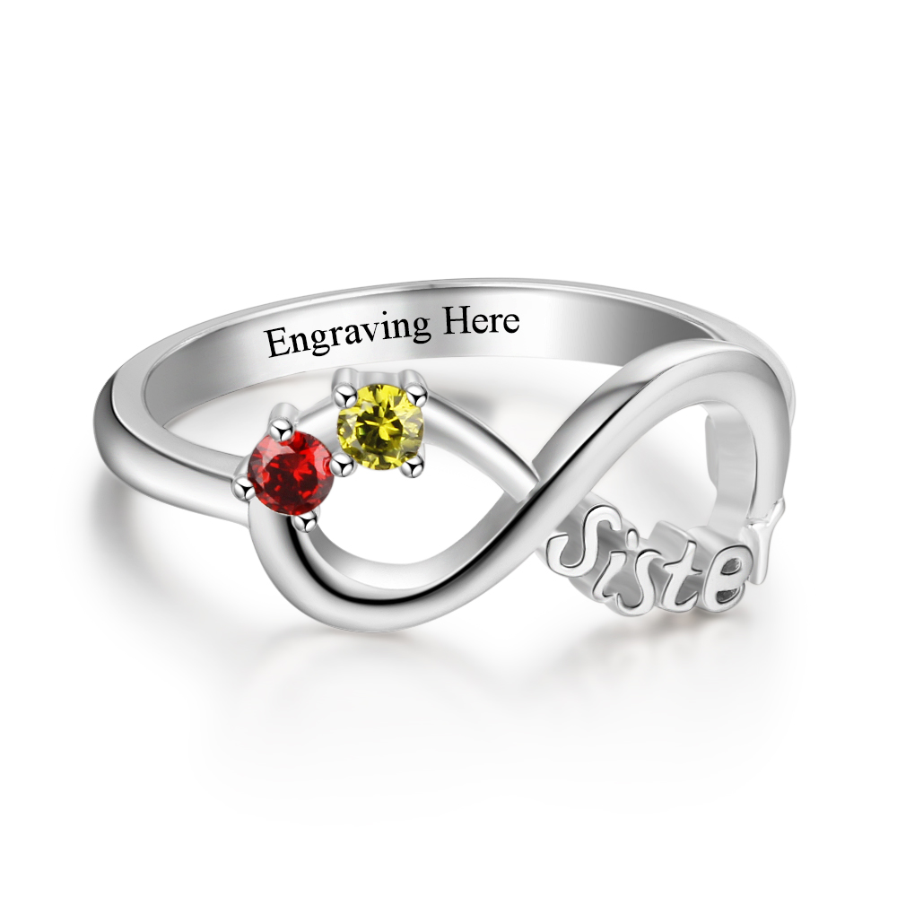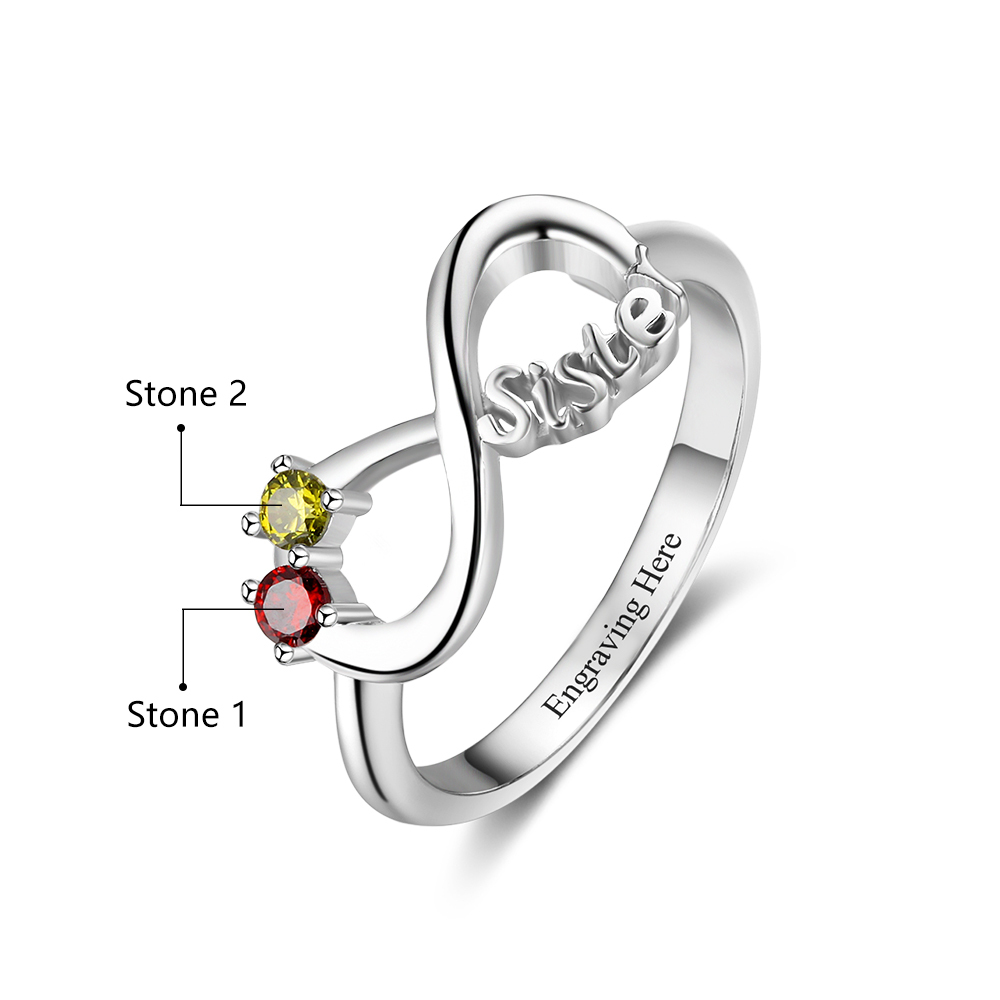925 Sterling Silber Ring mit Text und 2 Geburtssteinen mit Gravuren