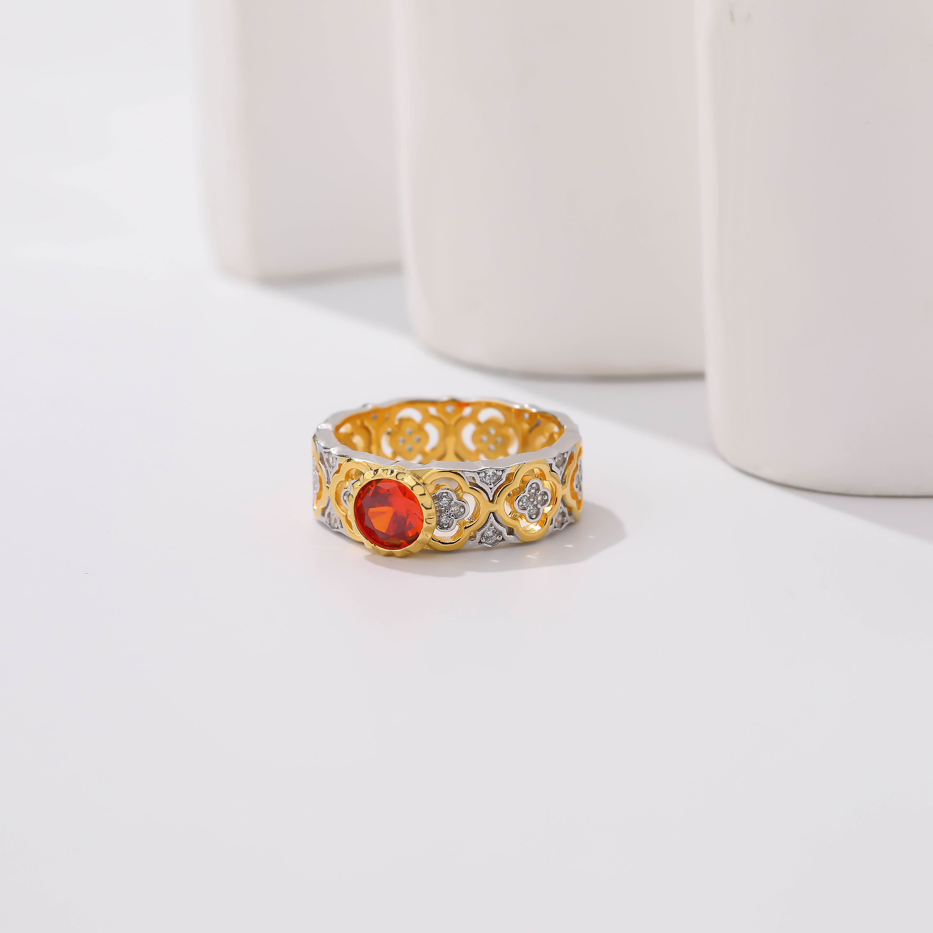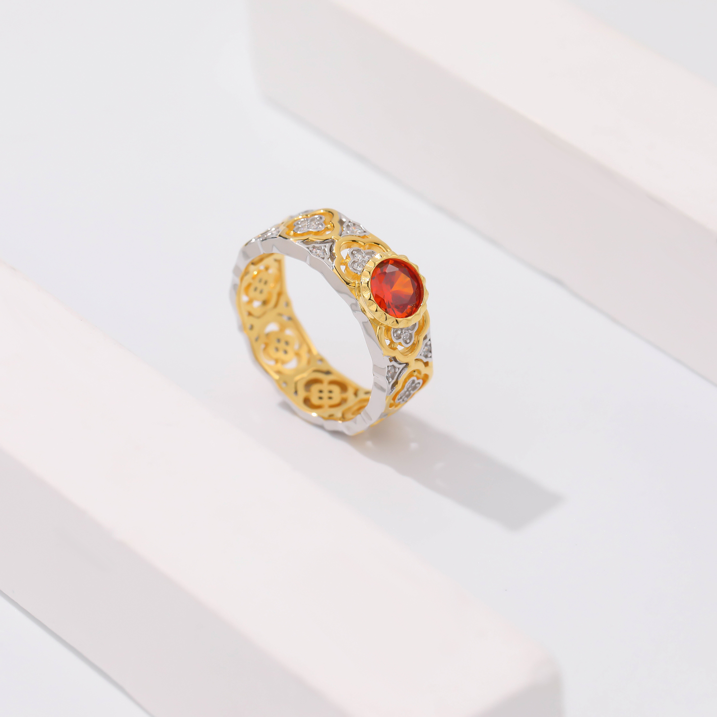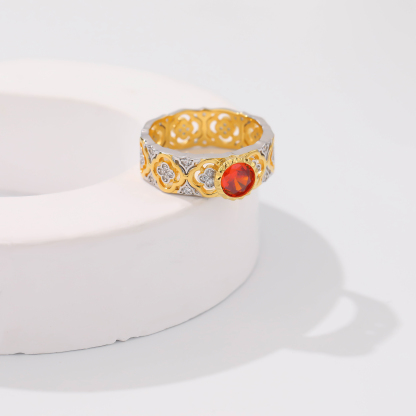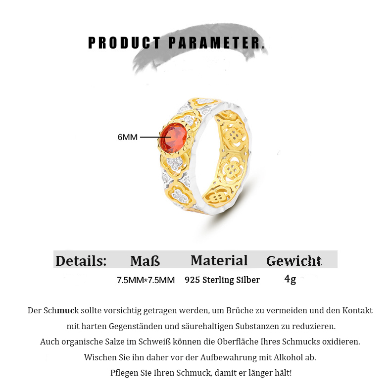 925 Sterling Silber Vintage Hohlring Ring mit Rot Zirkonia