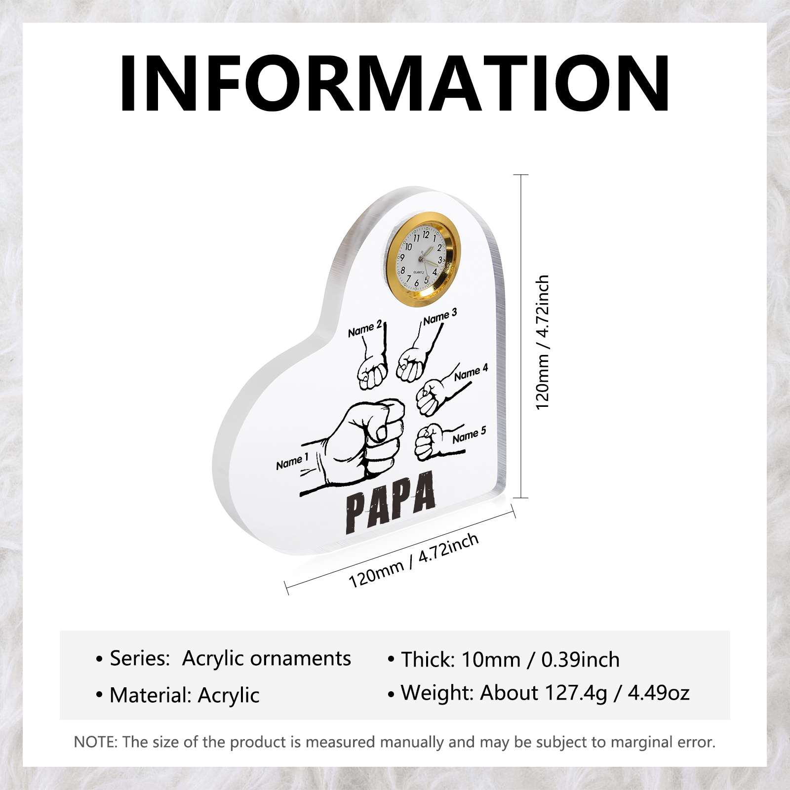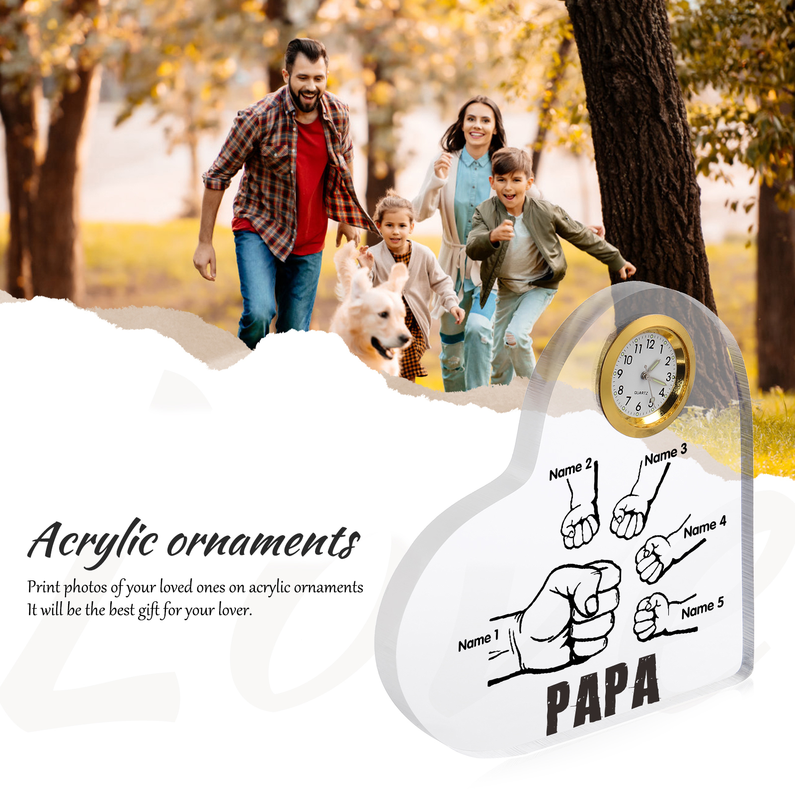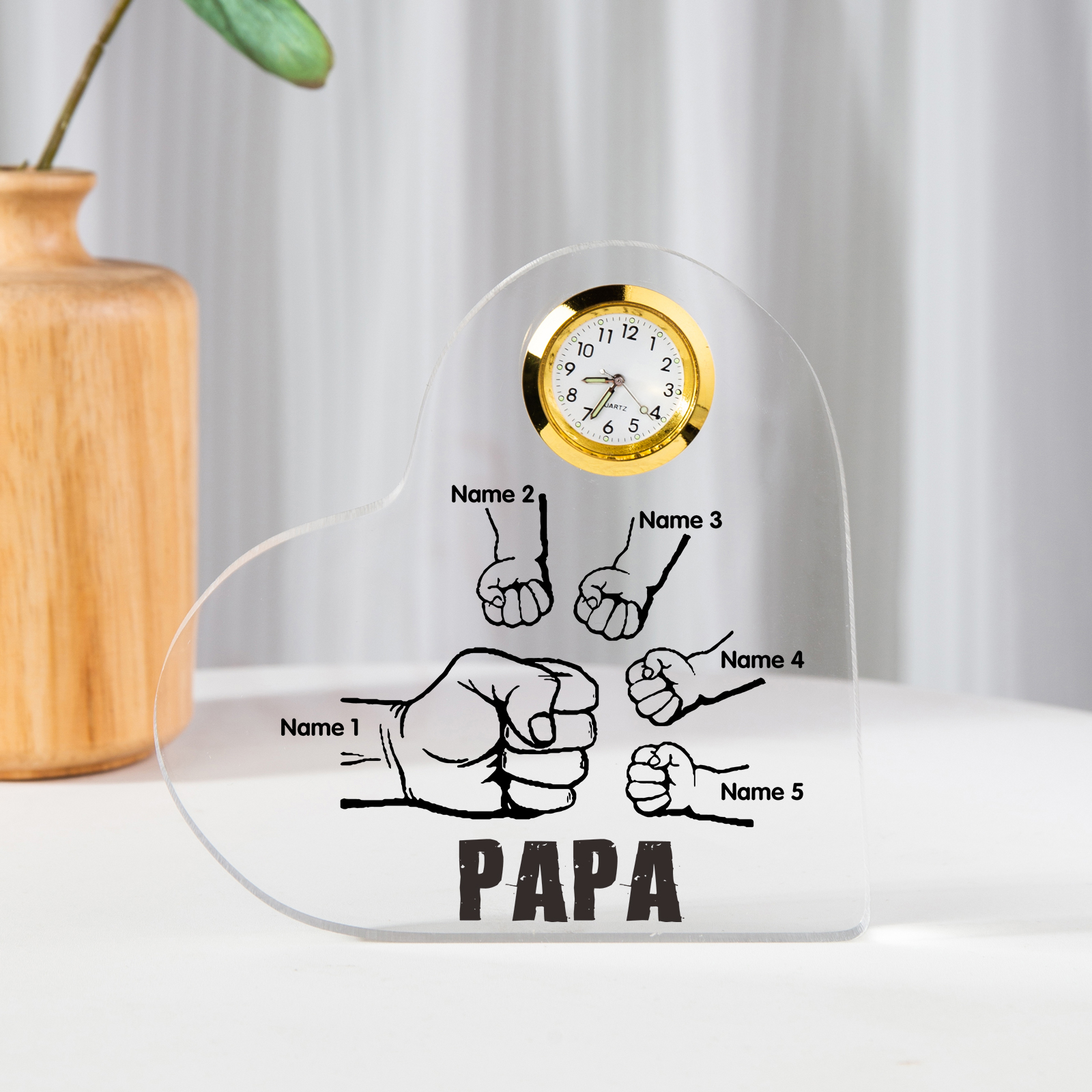 Acryl-Deko mit Uhr Personalisierte 5 Namen Papa Faust Schreibtischdekoration für Vater