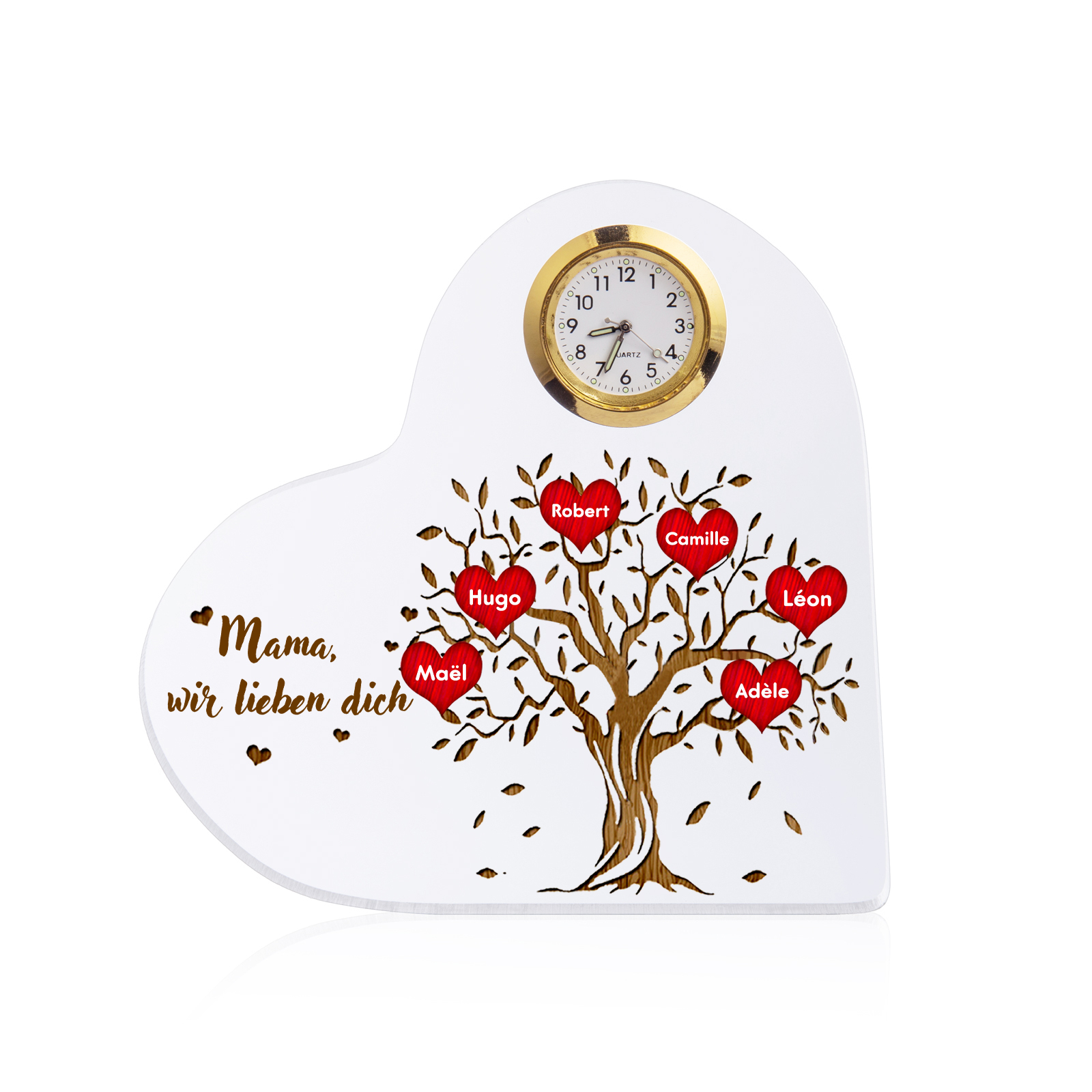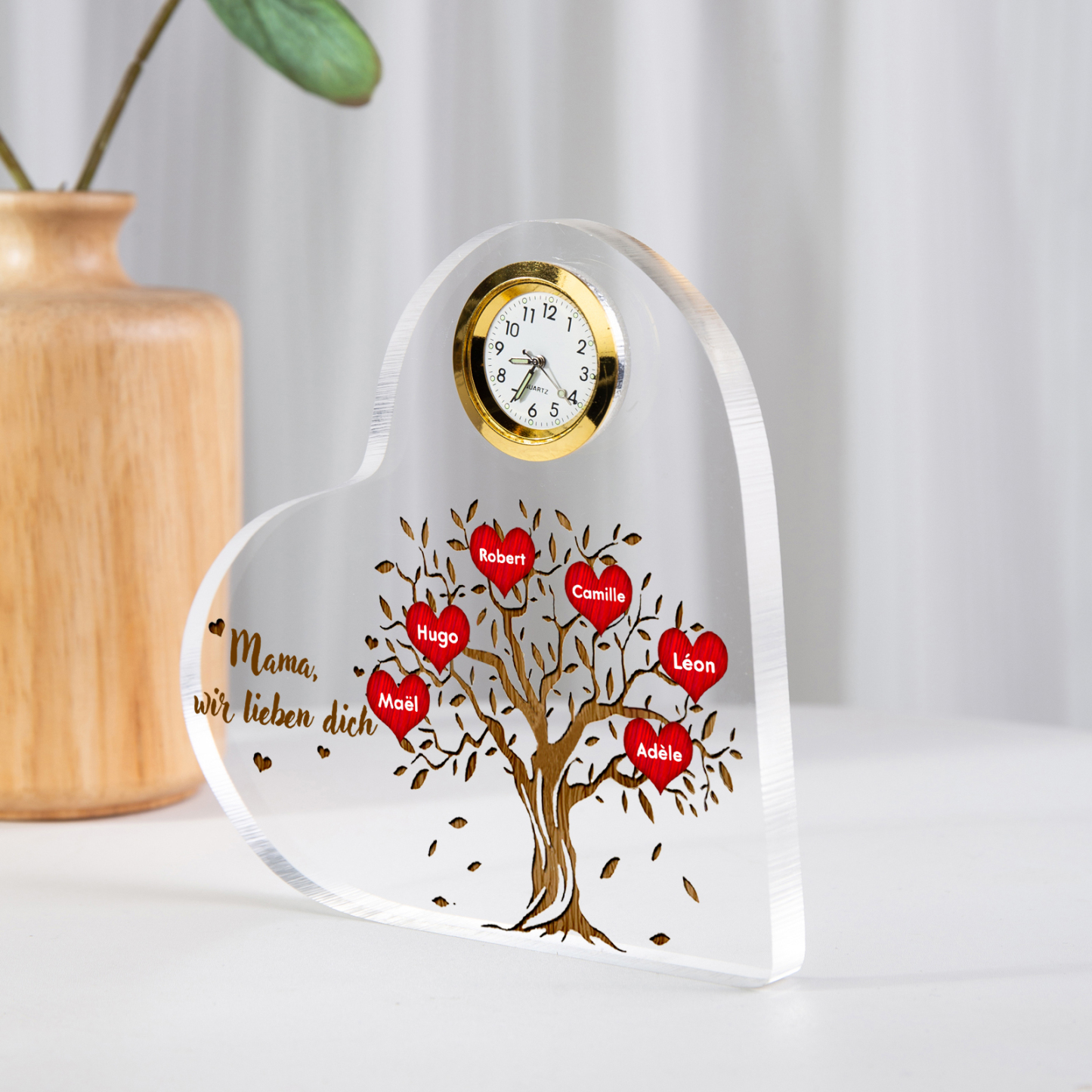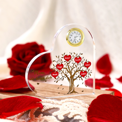 Acryl-Deko mit Uhr-Personalisierte 6 Namen & Text Familienbaum Schreibtischdekoration für Familie
