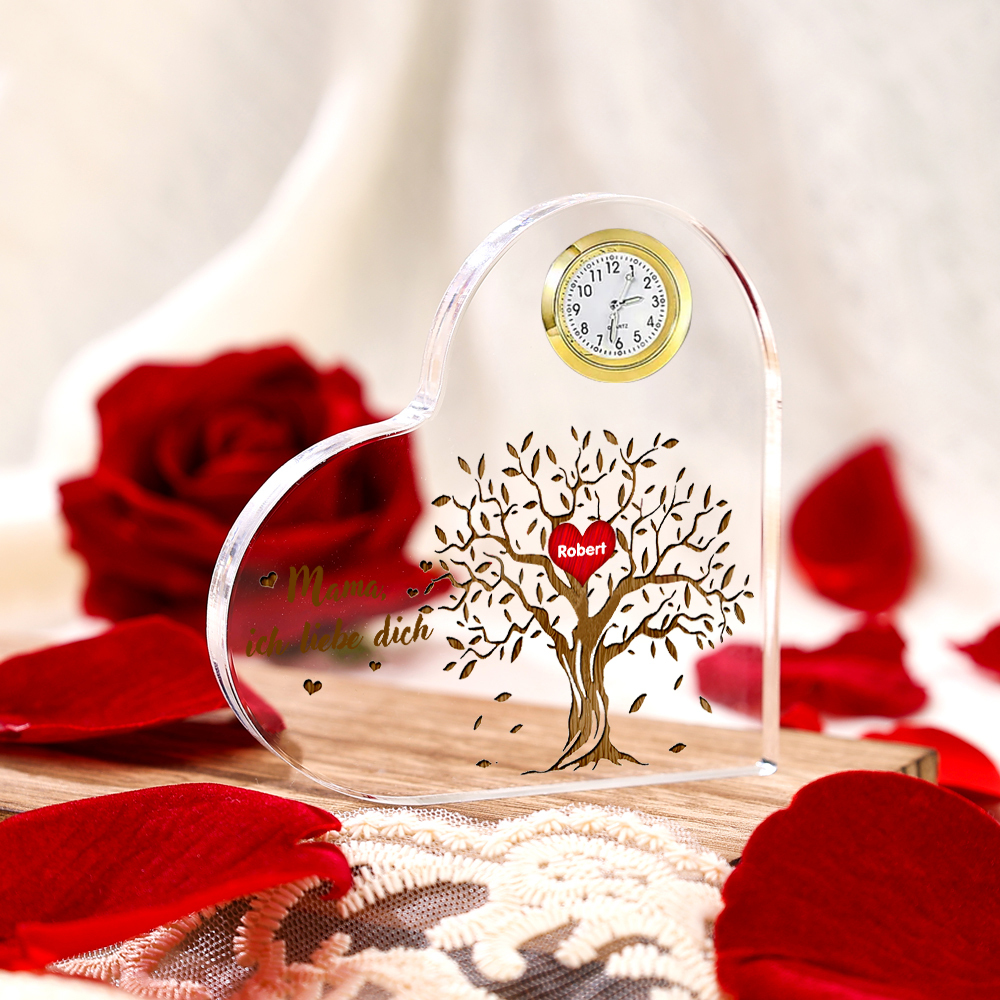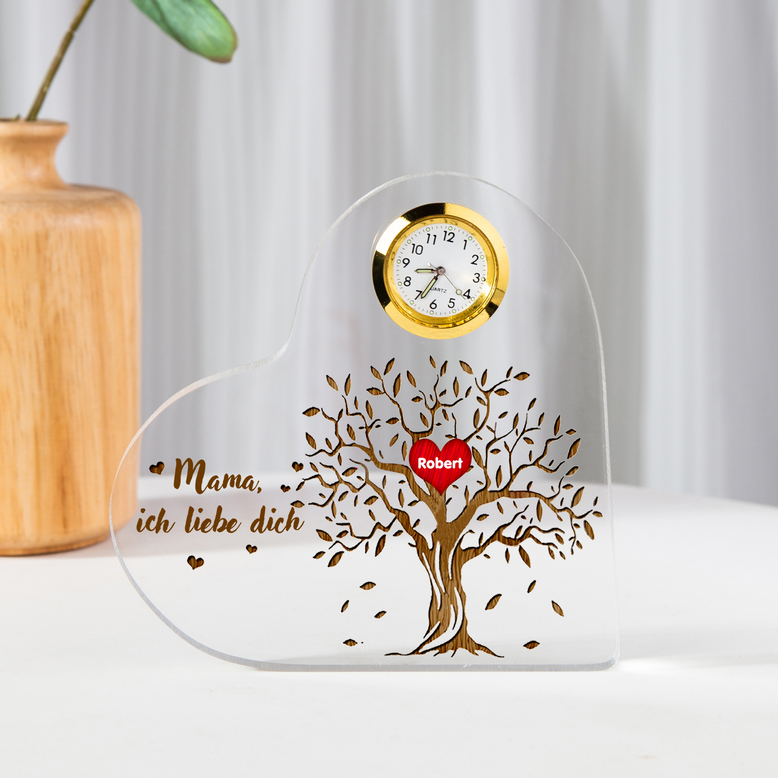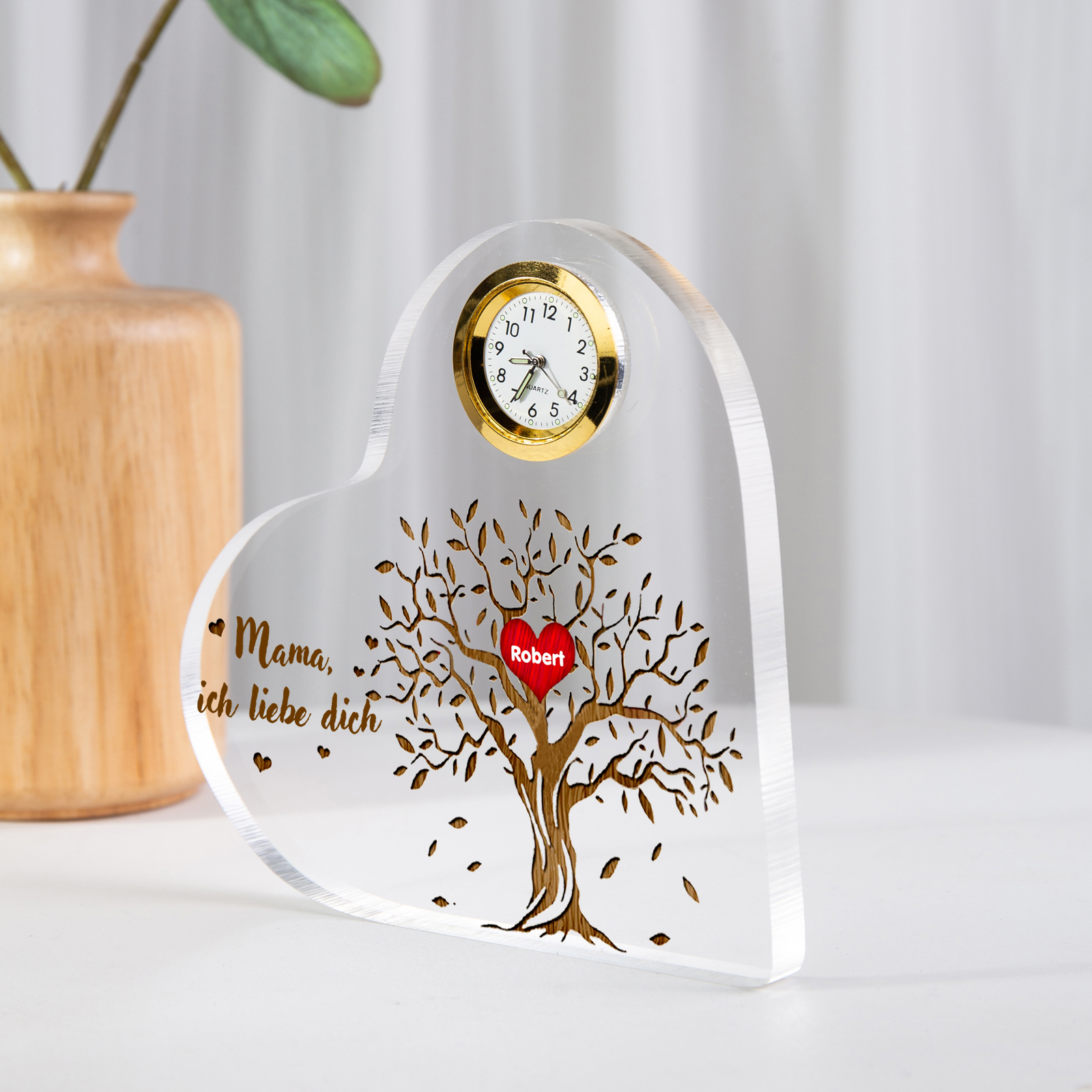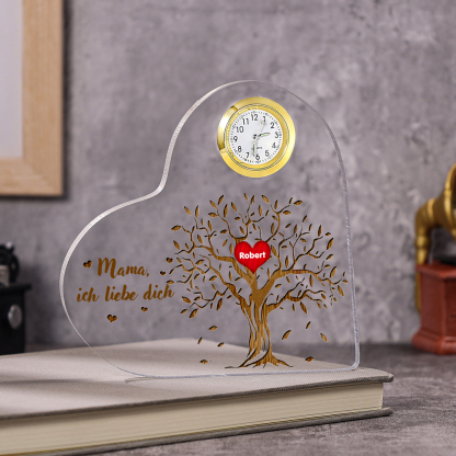 Acryl-Deko mit Uhr-Personalisierter 1 Name & Text Familienbaum Schreibtischdekoration für Familie