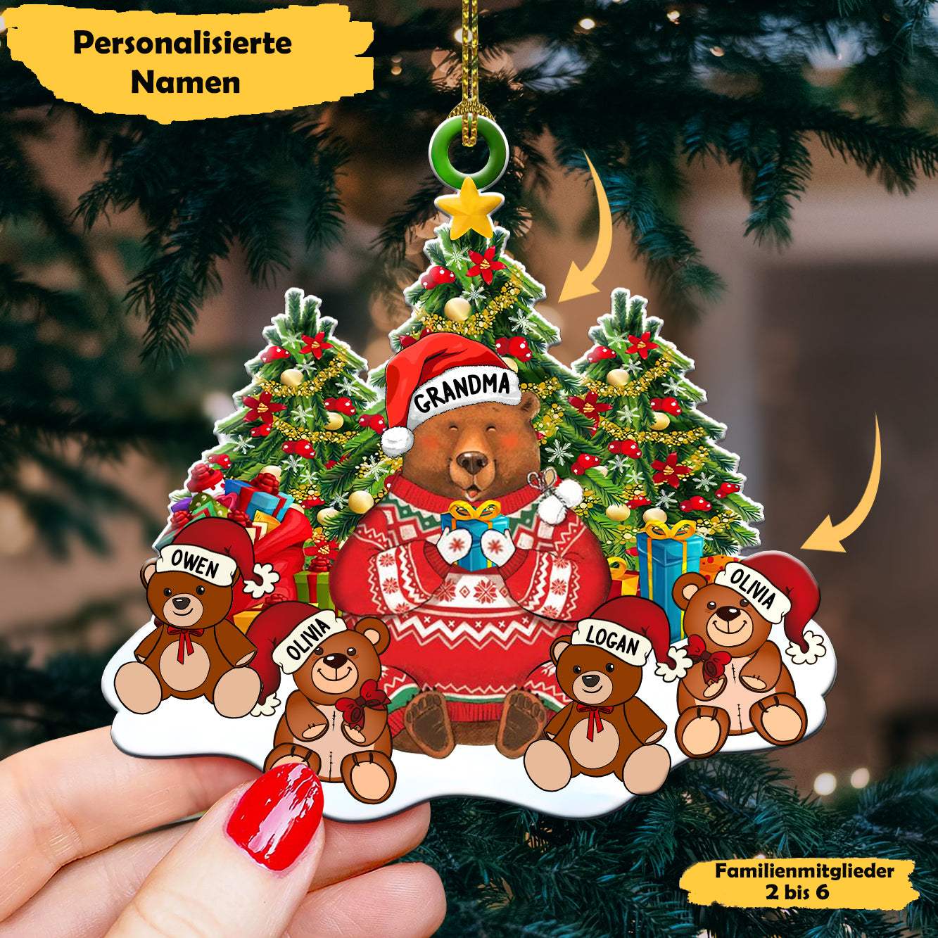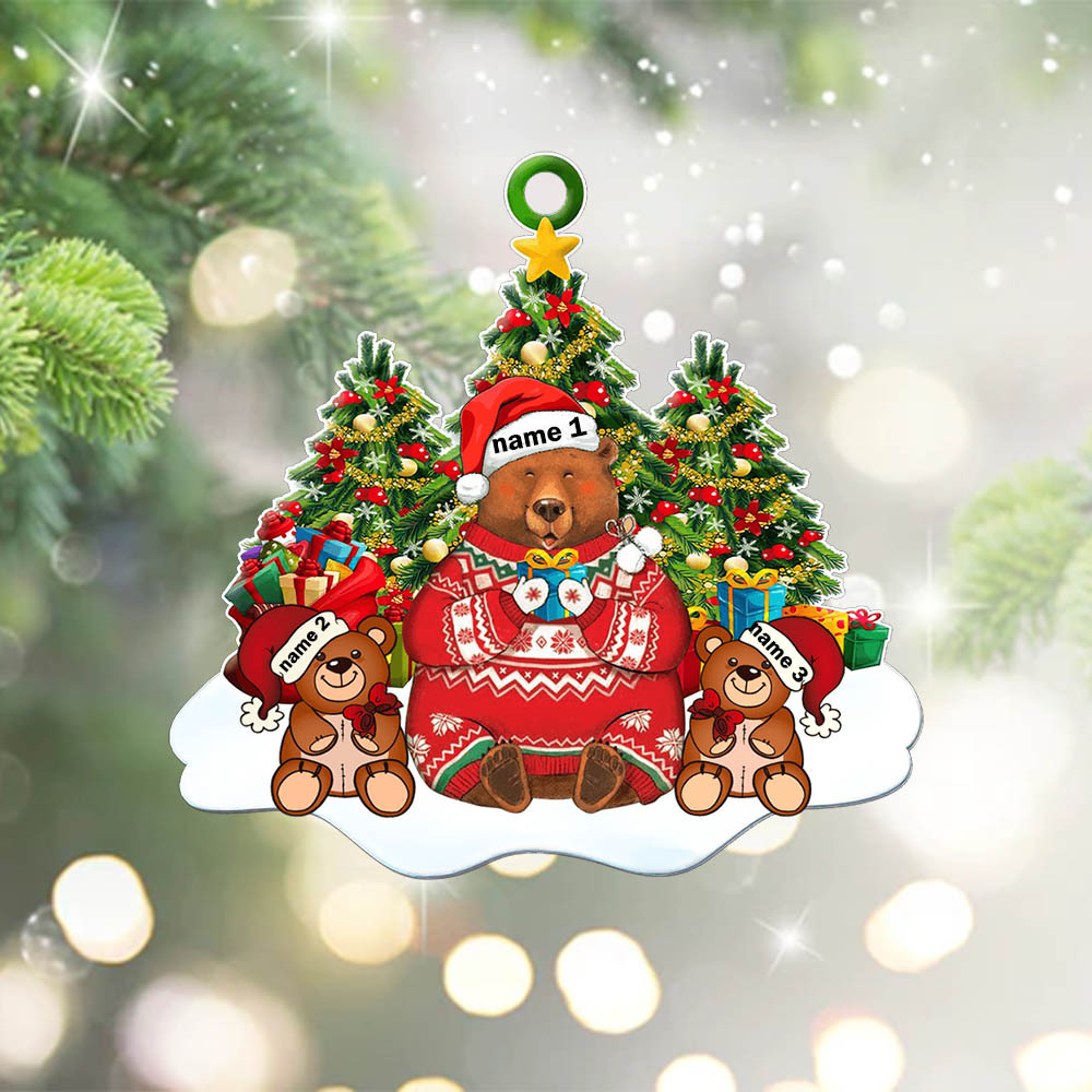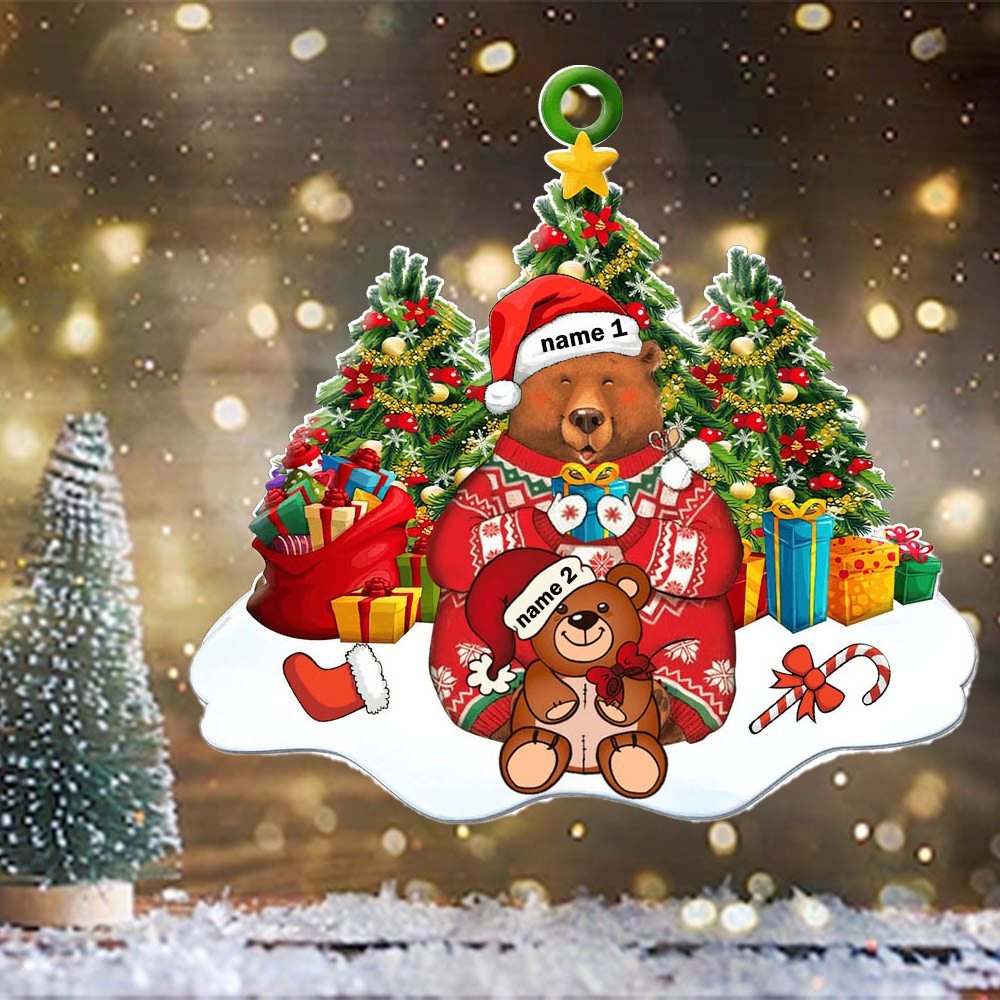 Acryl Personalisiertes 2 Namen Weihnachtsornament Mama & Kind Bär Anhänger