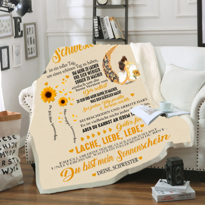 "An meine Schwester" Decke - Mond und Sonnenblume