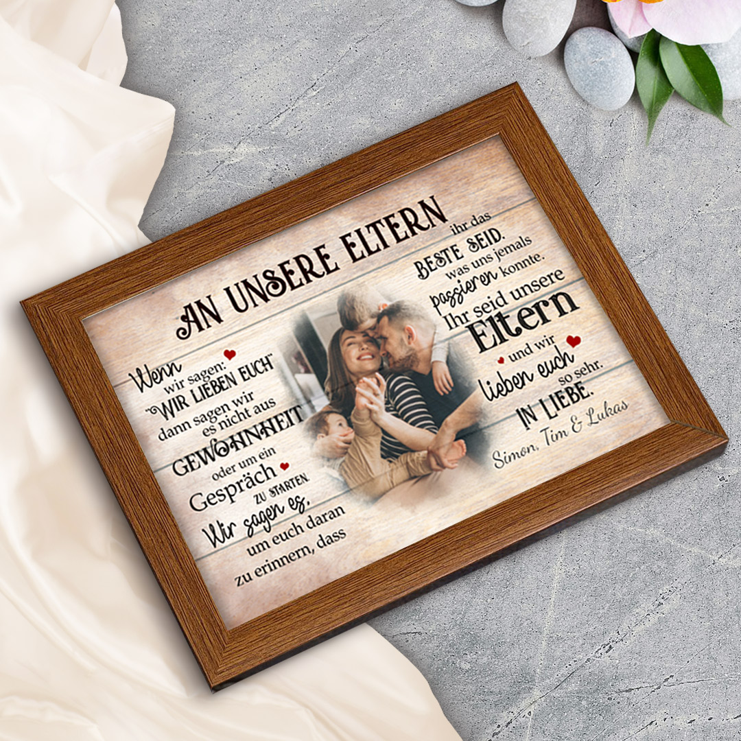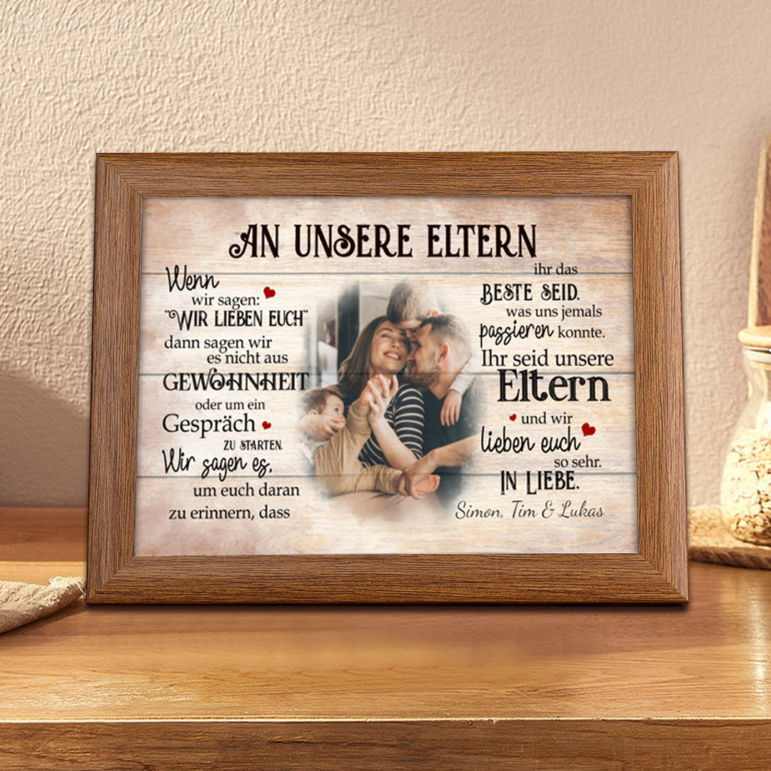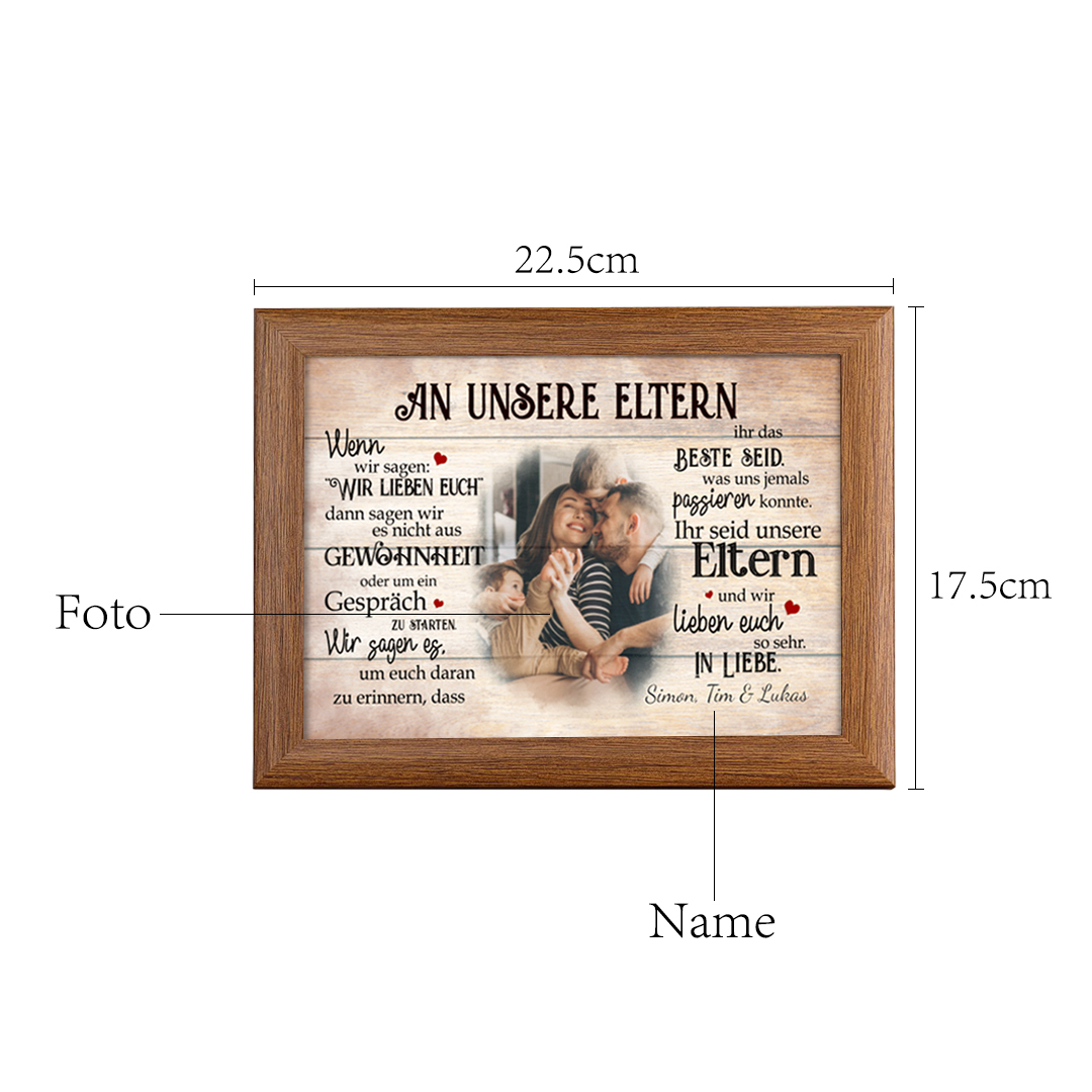 An unsere Eltern-Holzrahmen-Personalisierte Text & Foto Bilderrahmen
