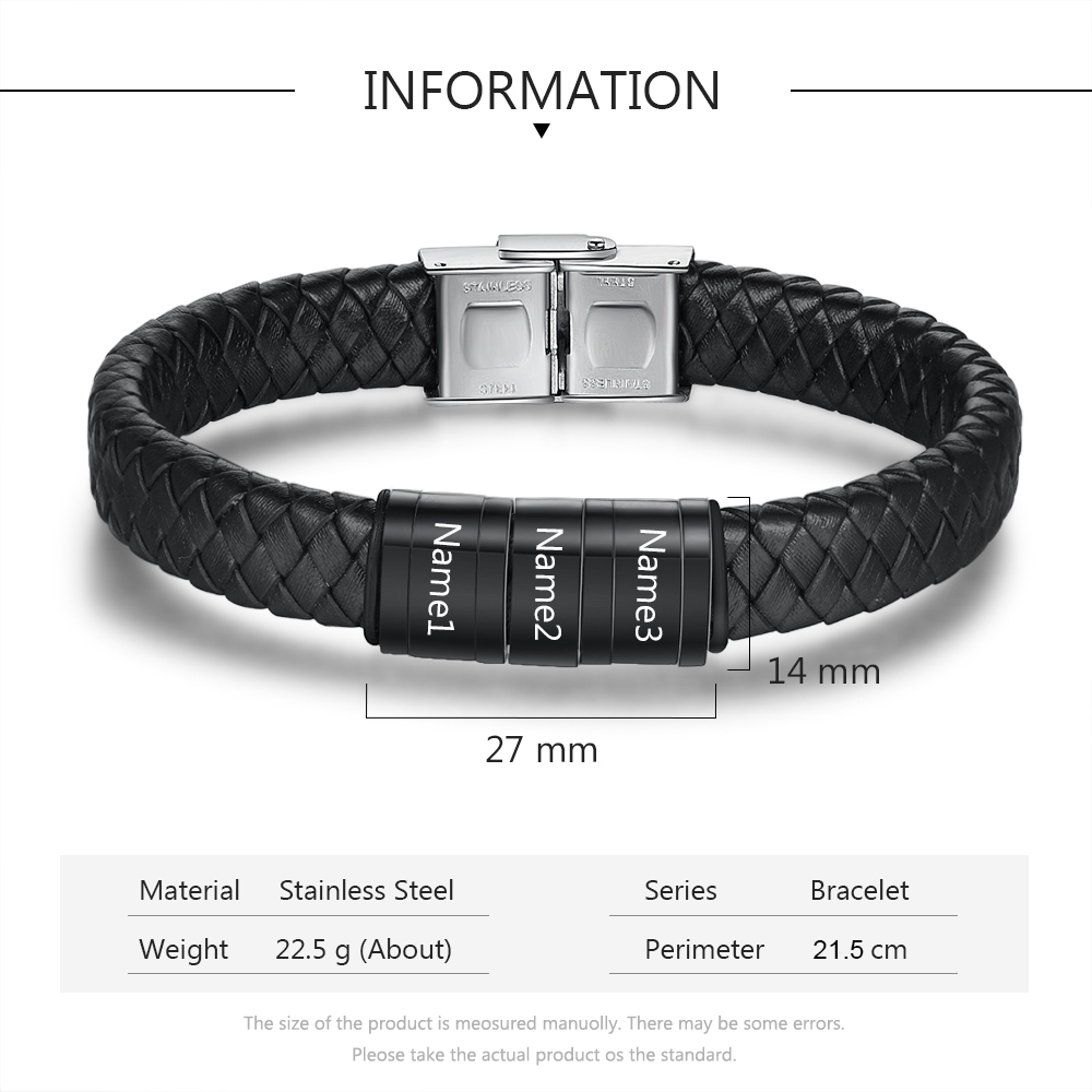 Armband aus geflochtenem Leder für Herren mit 3 eingraviertem Namen