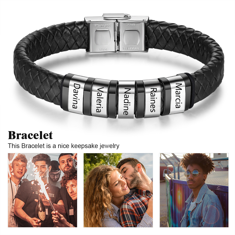 Armband aus geflochtenem Leder für Herren mit 5 eingraviertem Namen