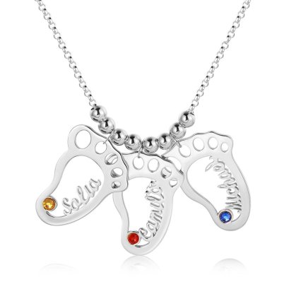 Baby Füße Name Halskette Hohlfüße Gravur 3 Namen mit 3 Geburtssteinen