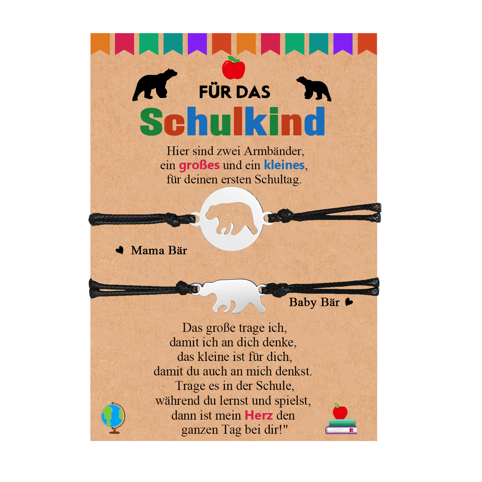 Bär Armbänder Set mit 2 Ketten- Für das Schulkind-Schulanfang Geschenk mit Nachrichtenkarte