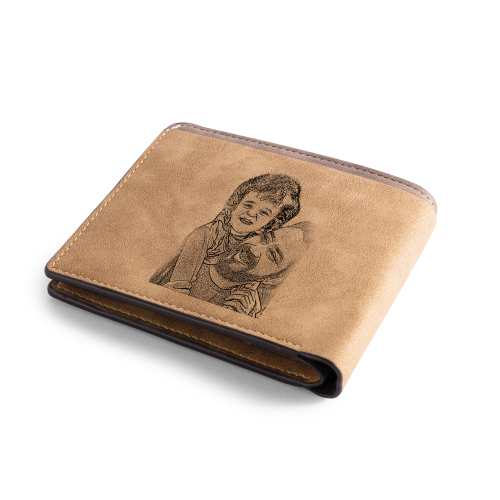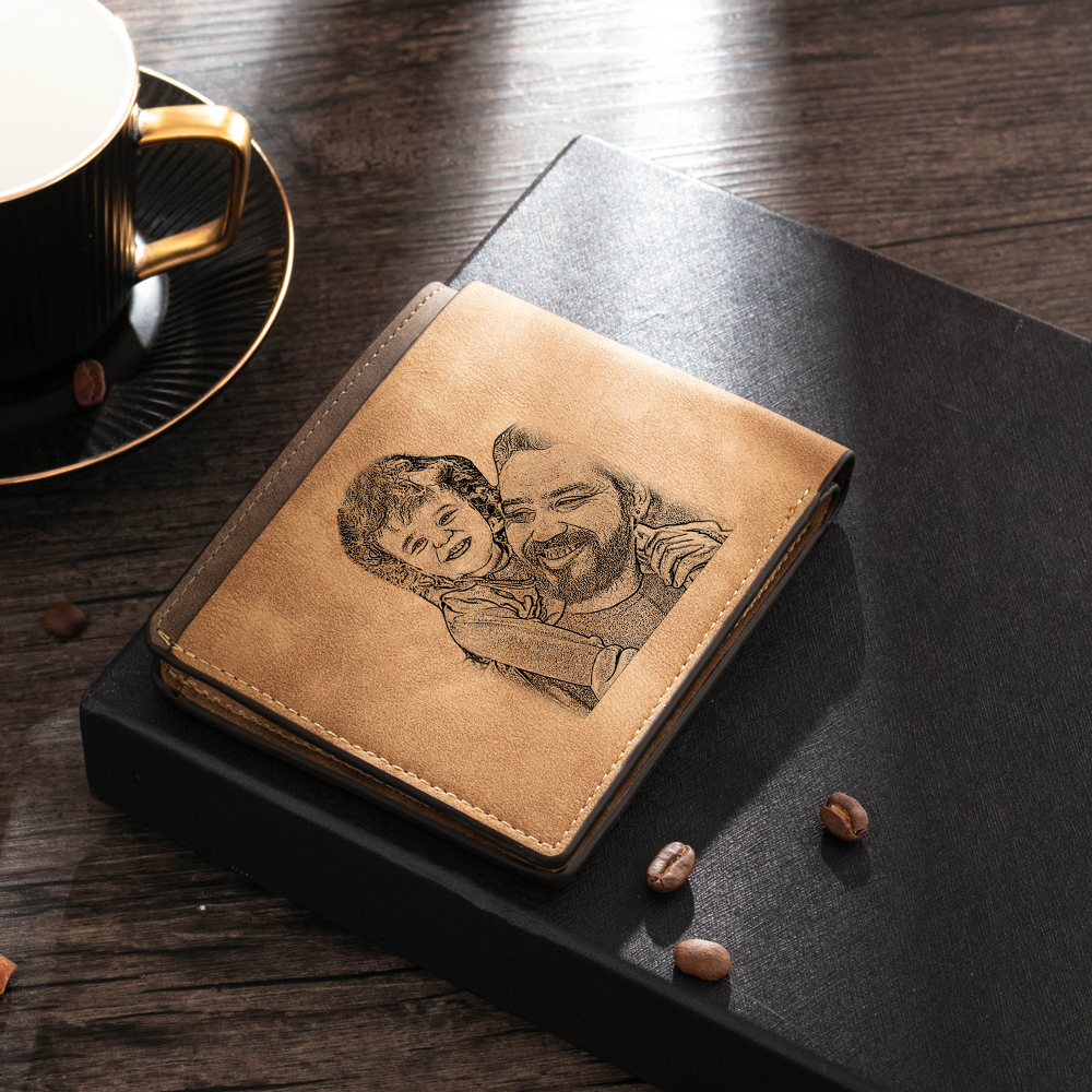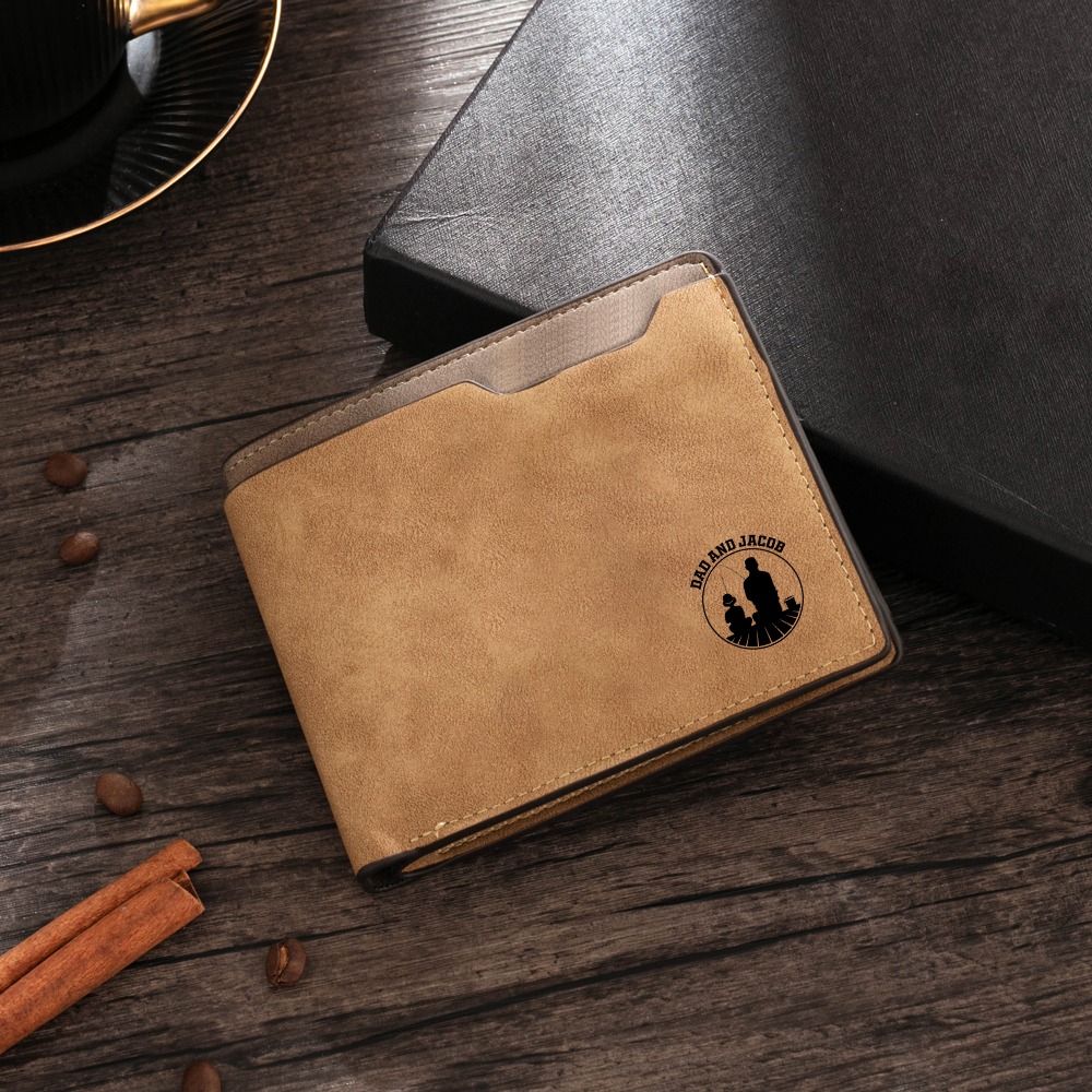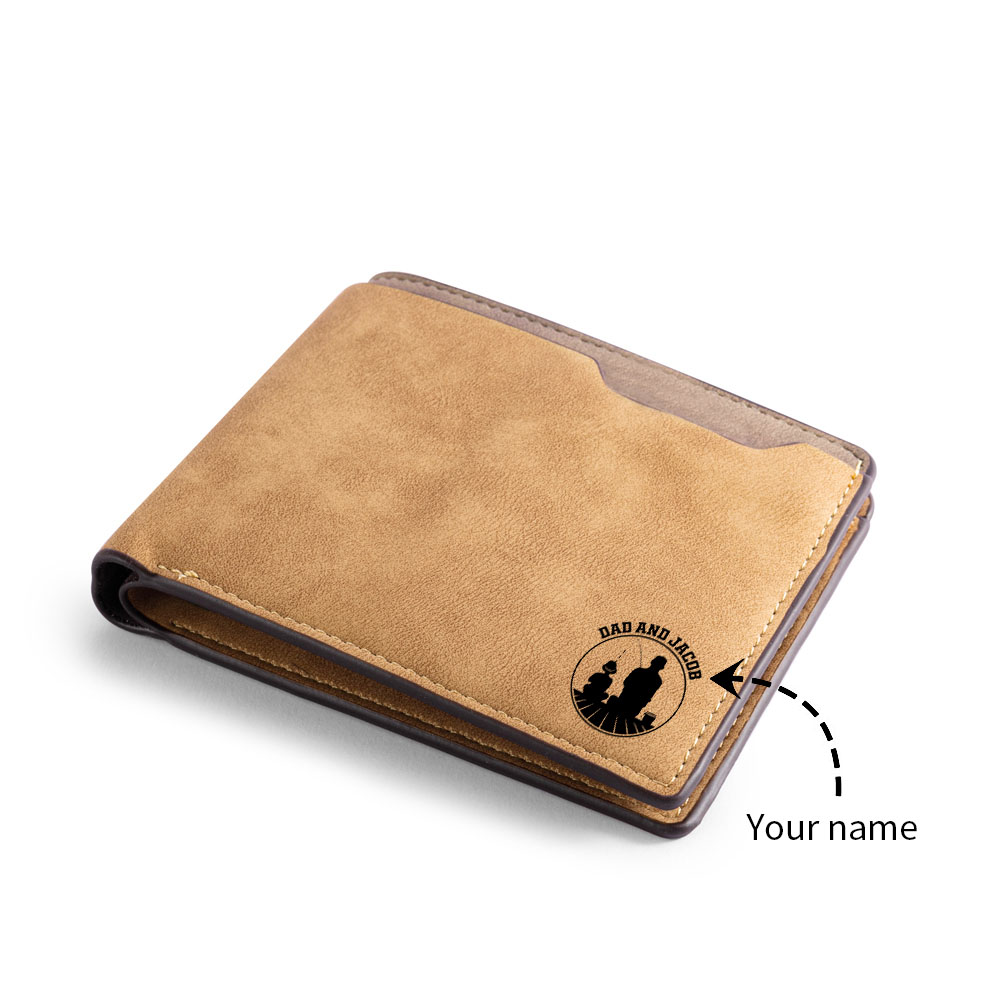 Benutzerdefinierte Fotoname Gravur Herren Geldbörse mit Eltern-Kind-Angelmuster