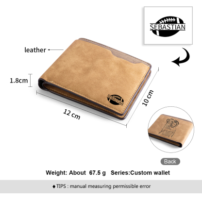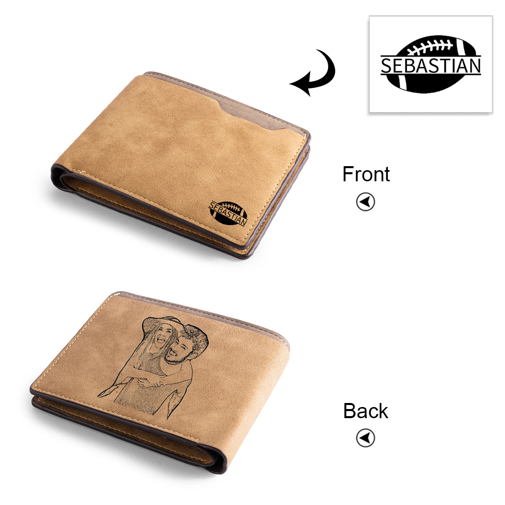 Benutzerdefinierte Fotoname Gravur Herren Geldbörse mit Rugby-Muster