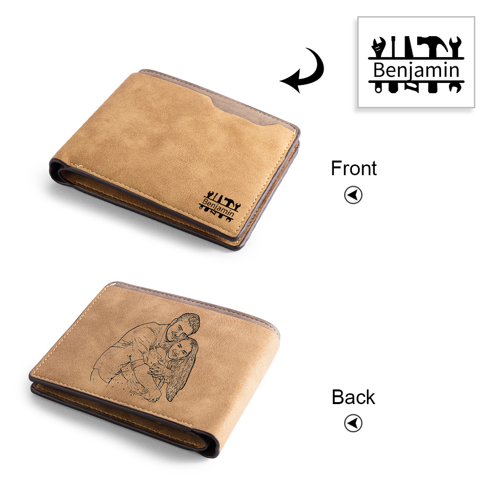 Benutzerdefinierte Fotoname Gravur Herren Geldbörse mit Werkzeugmuster