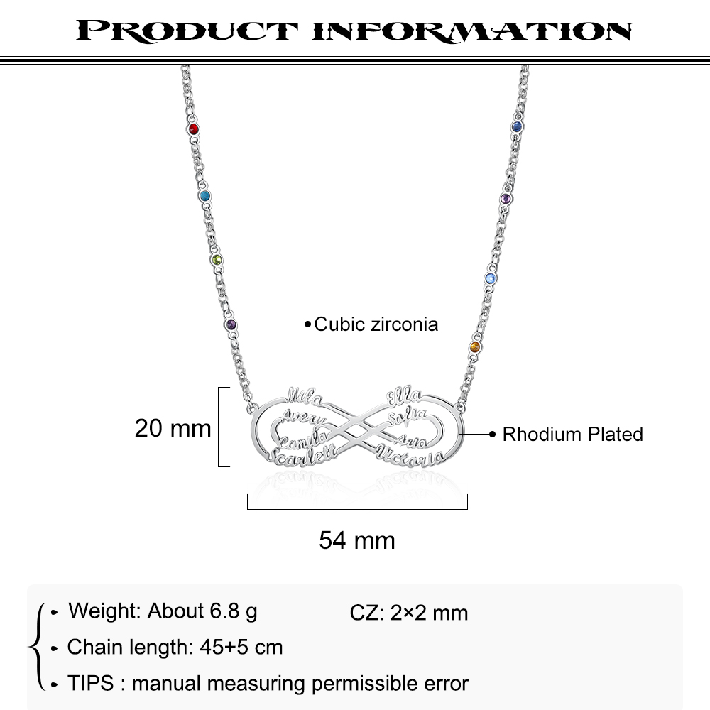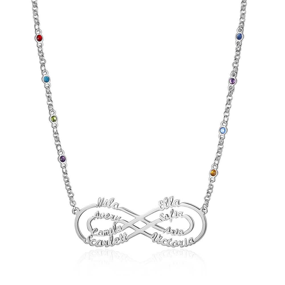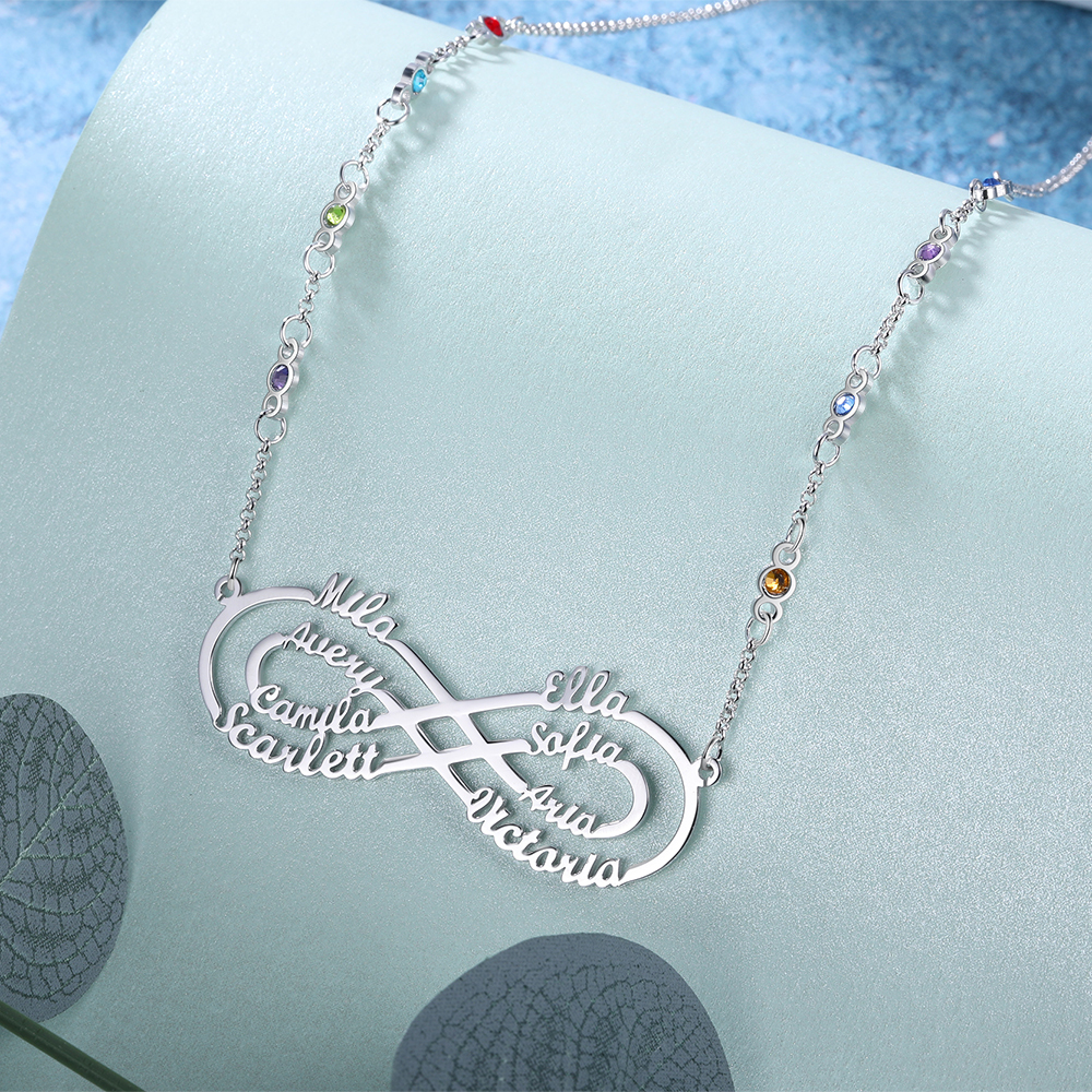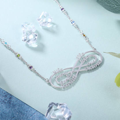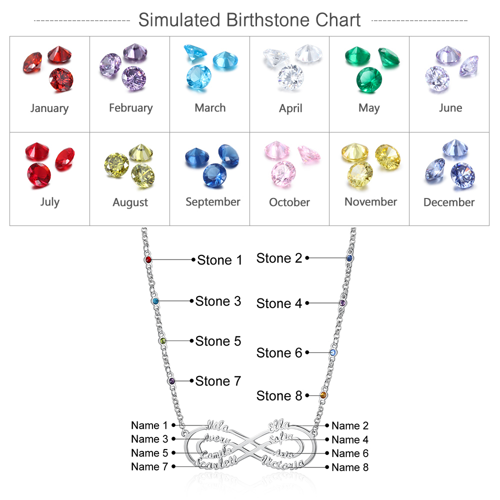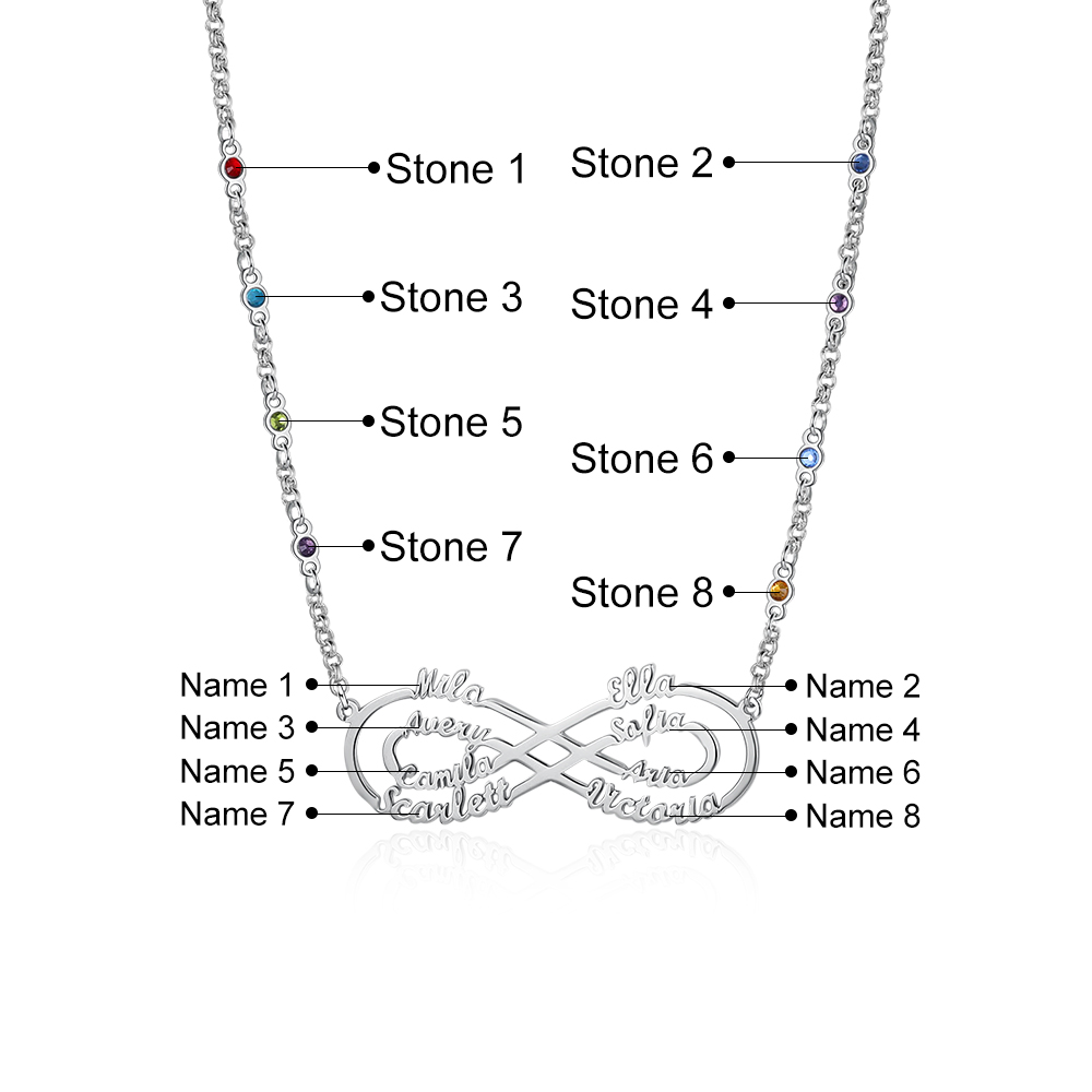 Benutzerdefinierte Unendlichkeit Infinity Halskette mit 8 Geburtssteine 8 Namen