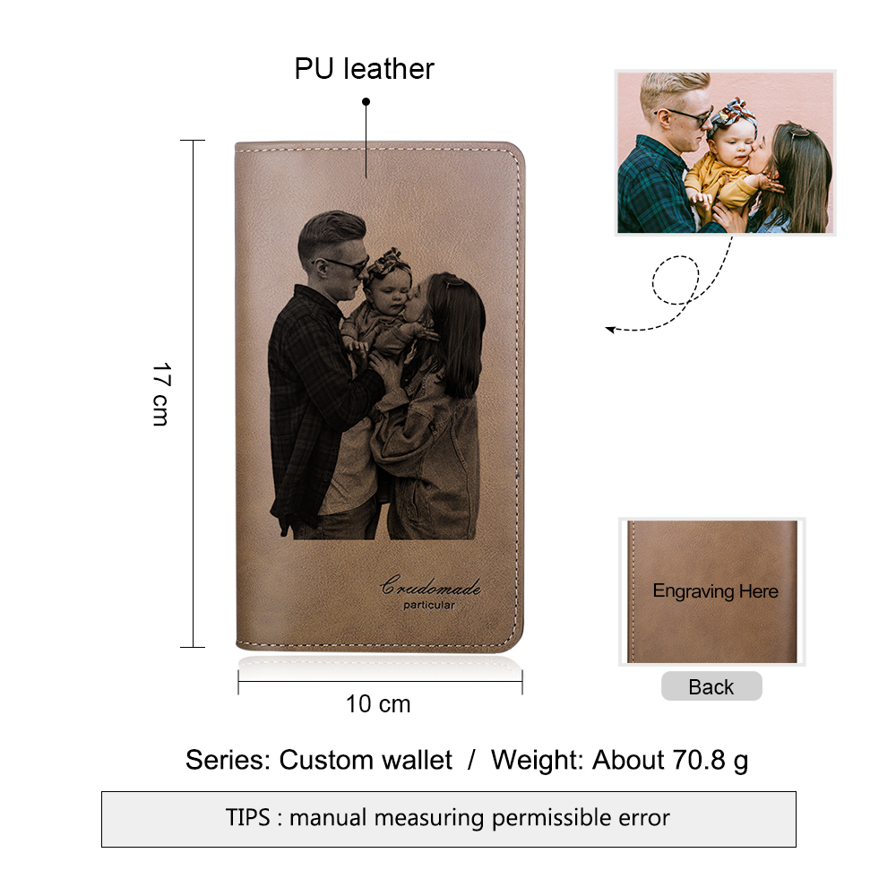 Bifold Personalisierte Foto Brieftasche Gravuren Text Leder Geldbörse