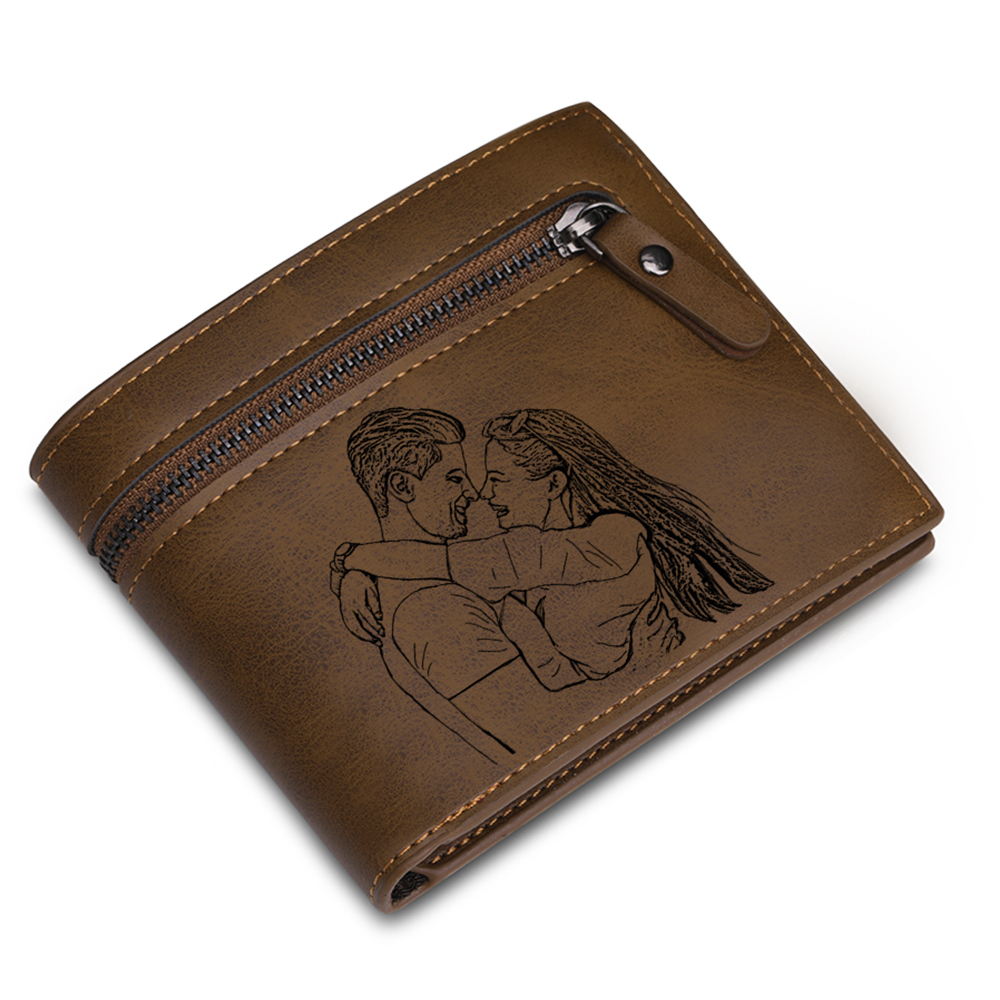 Brieftasche mit Graviertem Foto-Reißverschluss, exquisites Geschenk Geldbörse