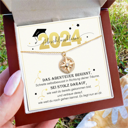 Damen Kompass Halskette -2024 Abschlussjahrgang Schreite selbstbewusst in Richtung deiner Träume-Geschenk mit Nachrichtenkarte