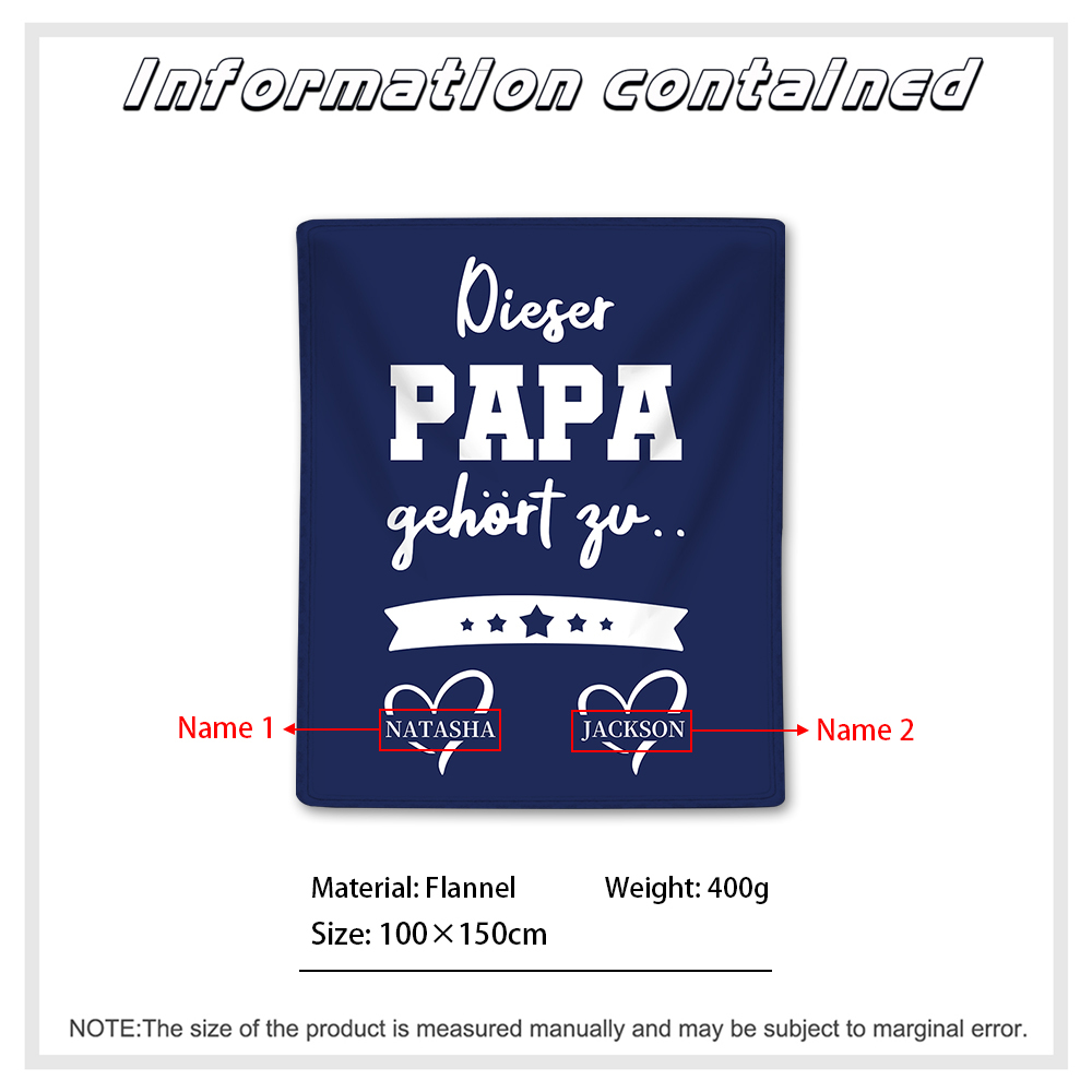 Decke-Personalisierbare 2 Namen Decke - Dieser Papa gehört zu - Geschenk für Vater