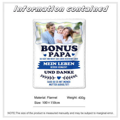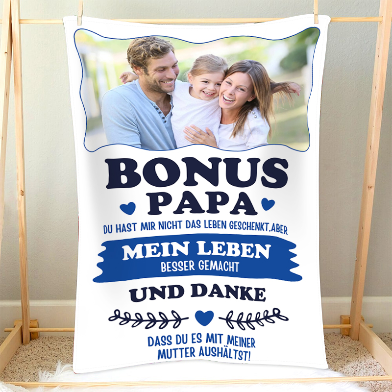 Decke-Personalisierbares Foto Decke - Bonus Papa du hast mein Leben besser gemacht - Geschenk für Bonus Vater